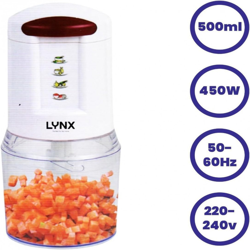 مفرمة البصل الكهربائية هي جهاز صغير الحجم وقوي مصمم خصيصًا لتقطيع البصل والخضروات الأخرى بسرعة وسهولة. تعمل هذه المفرمة بقدرة 450 واط، مما يضمن أداءً قويًا وسريعًا.