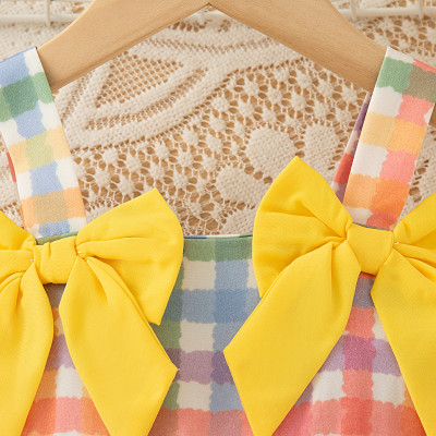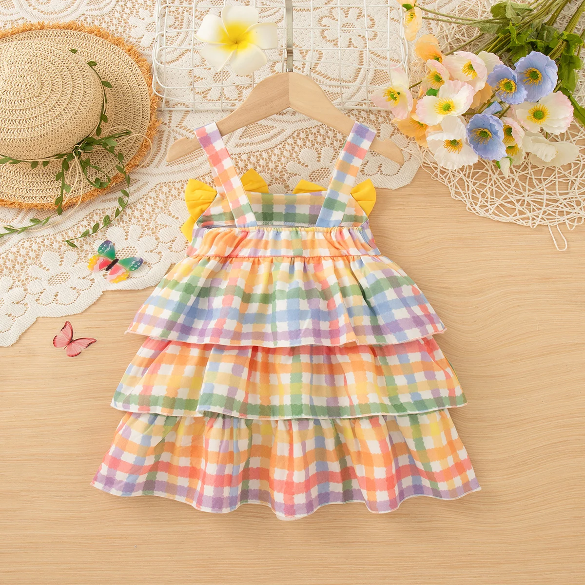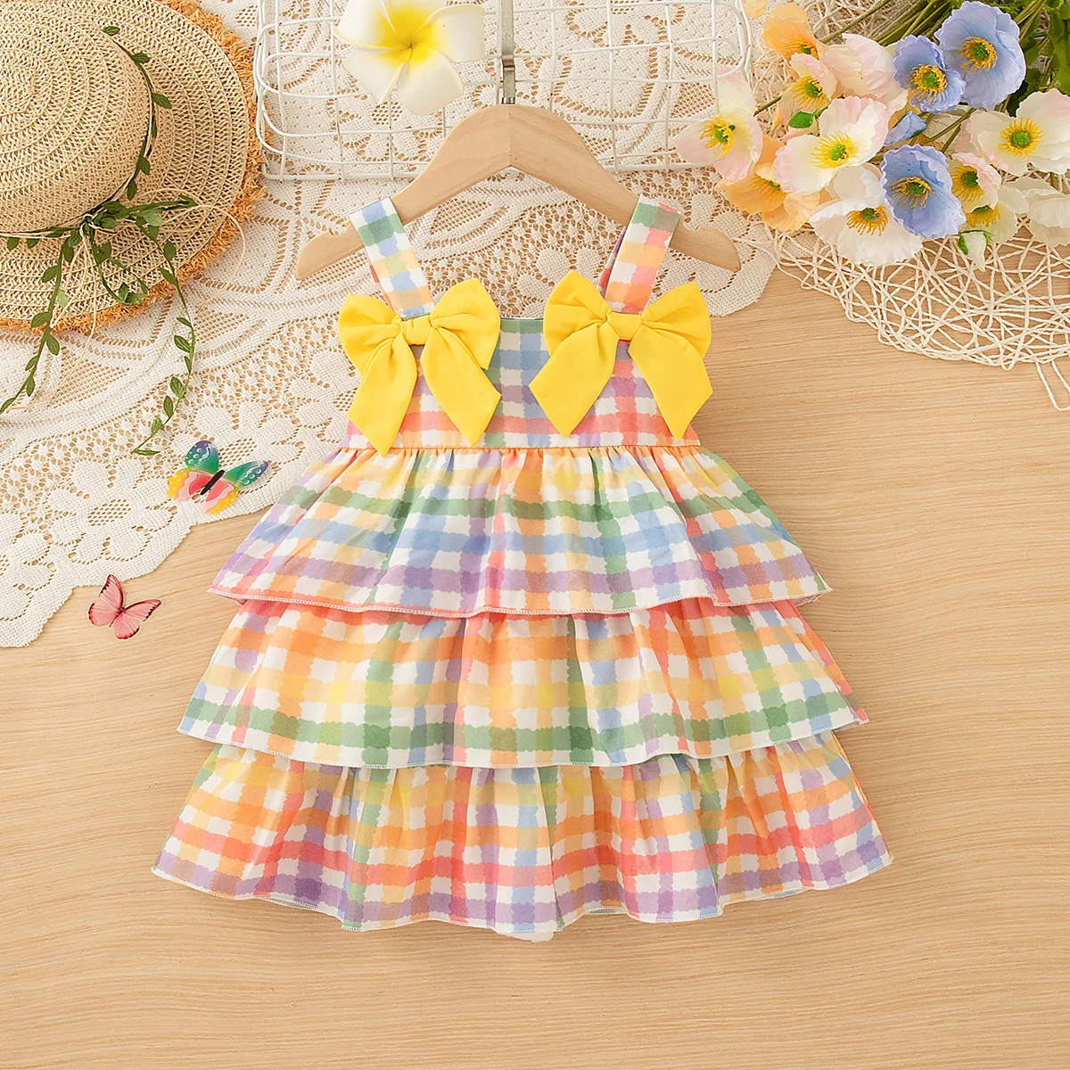 فساتين أطفال صيفية من القطن بفيونكة بحمالات على شكل كعكة فستان بناتي كرتوني كاجوال ملابس فتاة الشاطئ