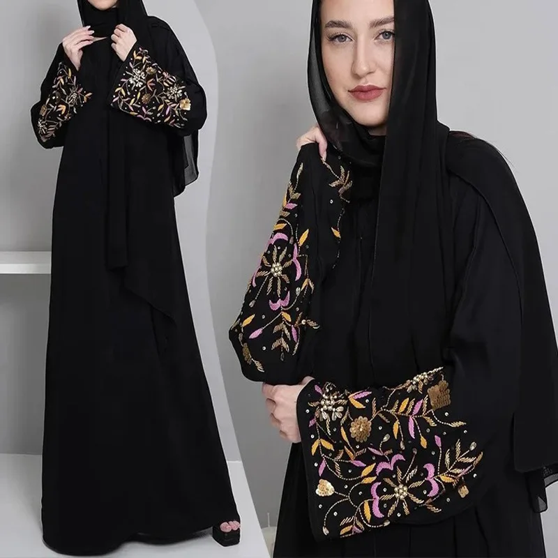 عيد المرأة المسلمة المفتوحة عباية جلابية سترة رداء التطريز فساتين طويلة المغرب دبي عبايات قفطان إسلام رمضان فيستدوس
