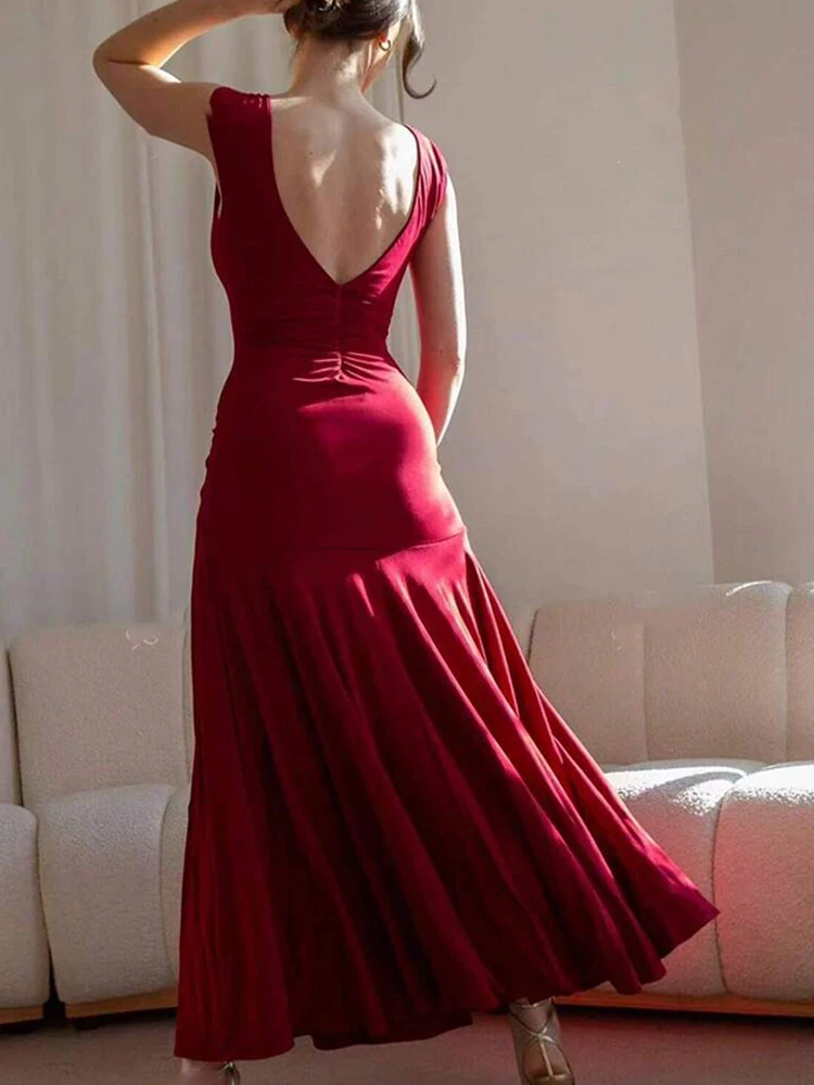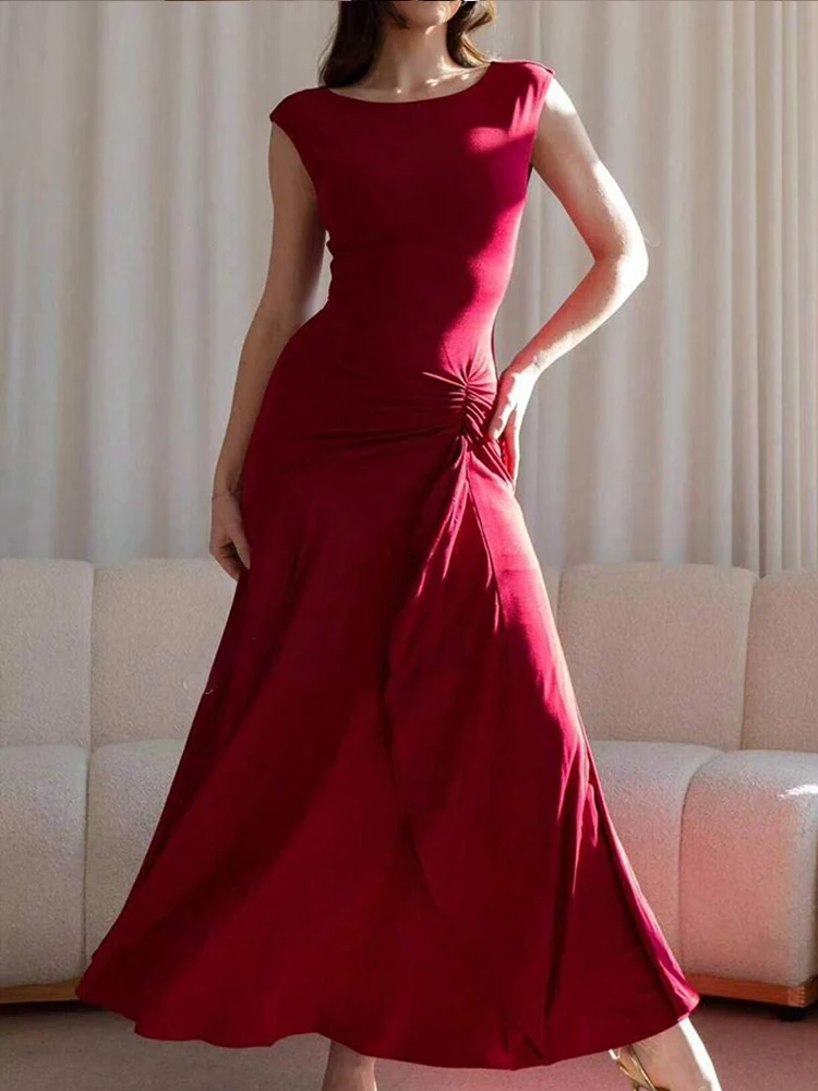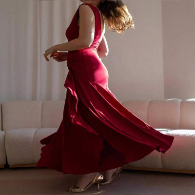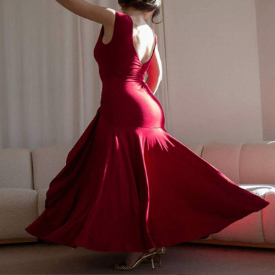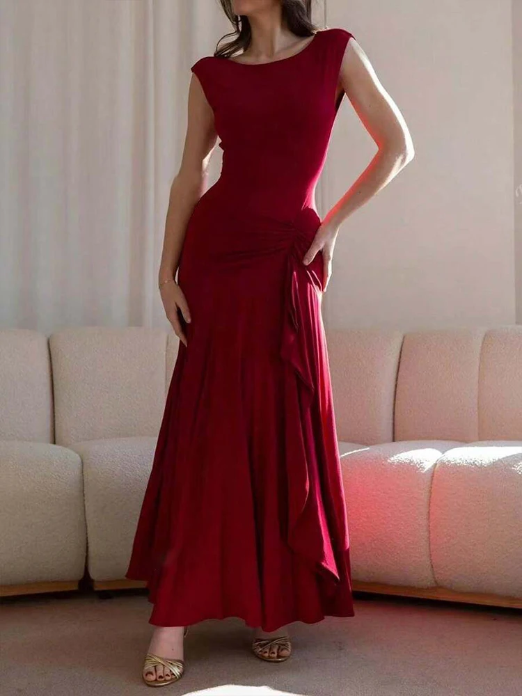 فساتين رافية نسائية صيفية عصرية لائقة بدون أكمام ورقبة دائرية فساتين سهرة طويلة