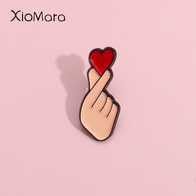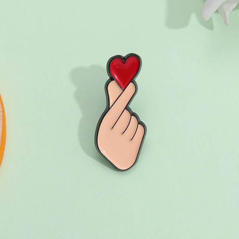 دبابيس المينا لفتة على شكل قلب اليد ، مخصص ، حلو ورومانسي ، دبابيس لغة الإشارة ، شارات طية صدر السترة ، هدية مجوهرات للعشاق ، صديق