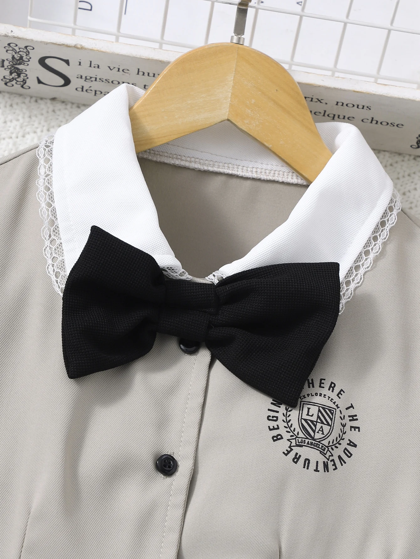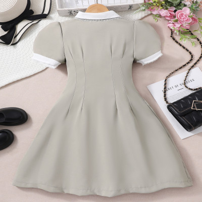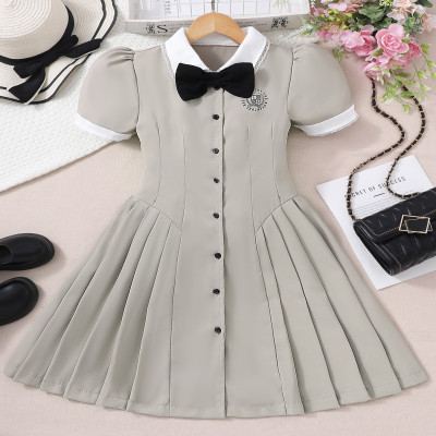مجموعة ربيع-صيف ٢٠٢٥: فساتين بنات كاجول تصميم بريبى أنيق بأكمام قصيرة - اللون البيج الرمادي للمدارس