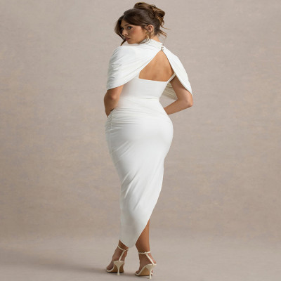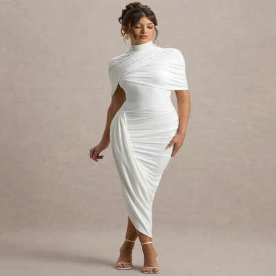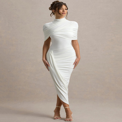 Mozision نصف كم عارية الذراعين Ruched مثير فستان ماكسي المرأة الصيف جديد الياقة المدورة ضئيلة عالية الخصر مساء نادي حفلة فستان طويل