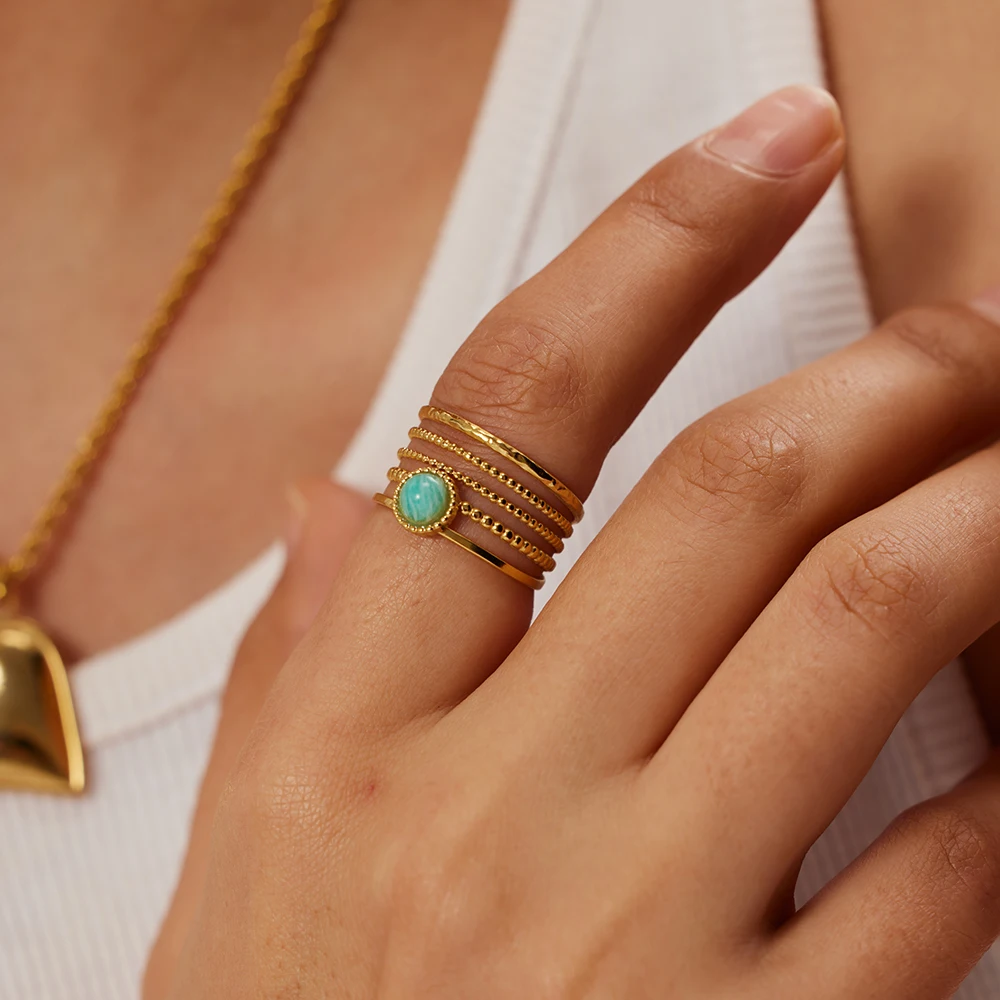 خاتم مجموعة مع شبه الكريمة الأحجار Vintage هندسية الزركونيوم خاتم خواتم المرأة خواتم للنساء مجوهرات مجموعات الموضة