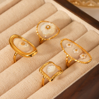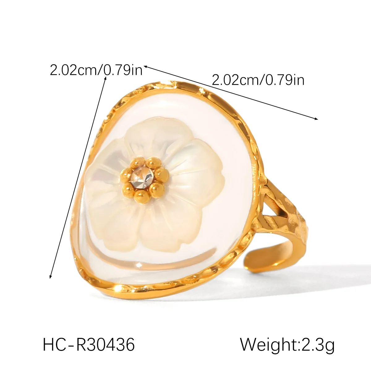Huangchao شل الزهور خواتم مفتوحة للنساء، الفولاذ المقاوم للصدأ مطلي 18K خاتم الذهب الأزياء والمجوهرات والاكسسوارات هدية
