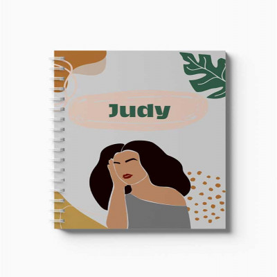 دفتر سلك حلزوني ٦٠ ورقة مقاس A5، لتسجيل الملاحظات وتدوين التذكيرات، بغلاف من الورق المقوى بتصميم اسم جودي بالإنجليزية