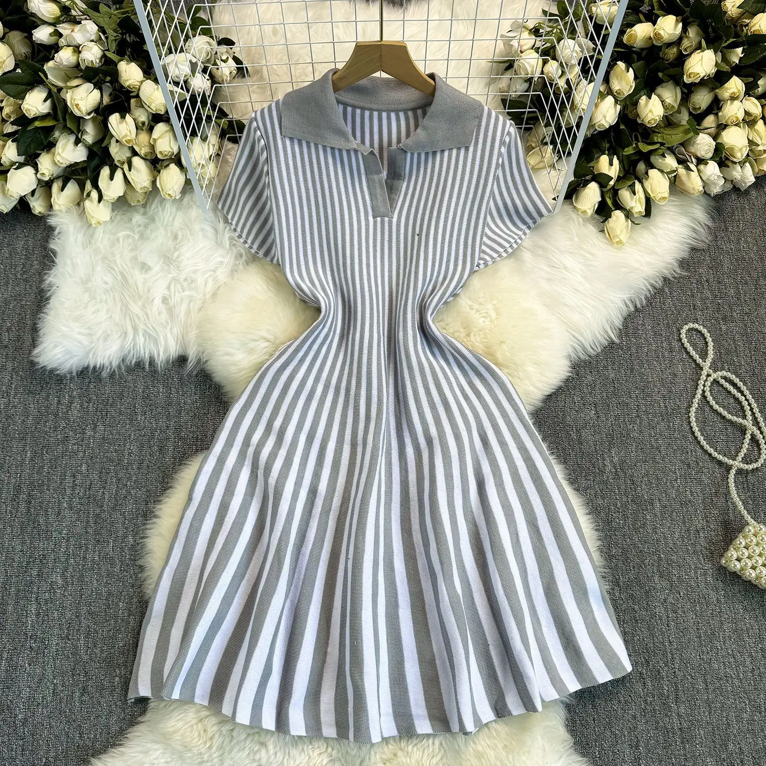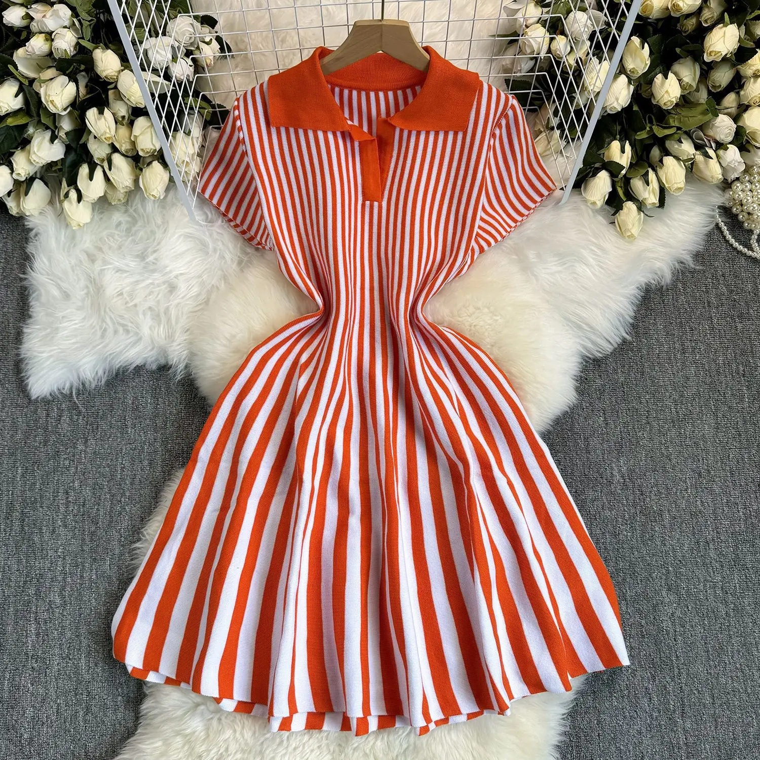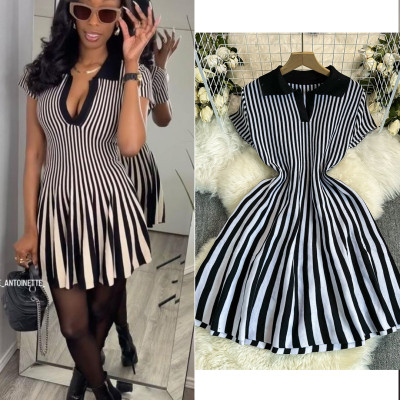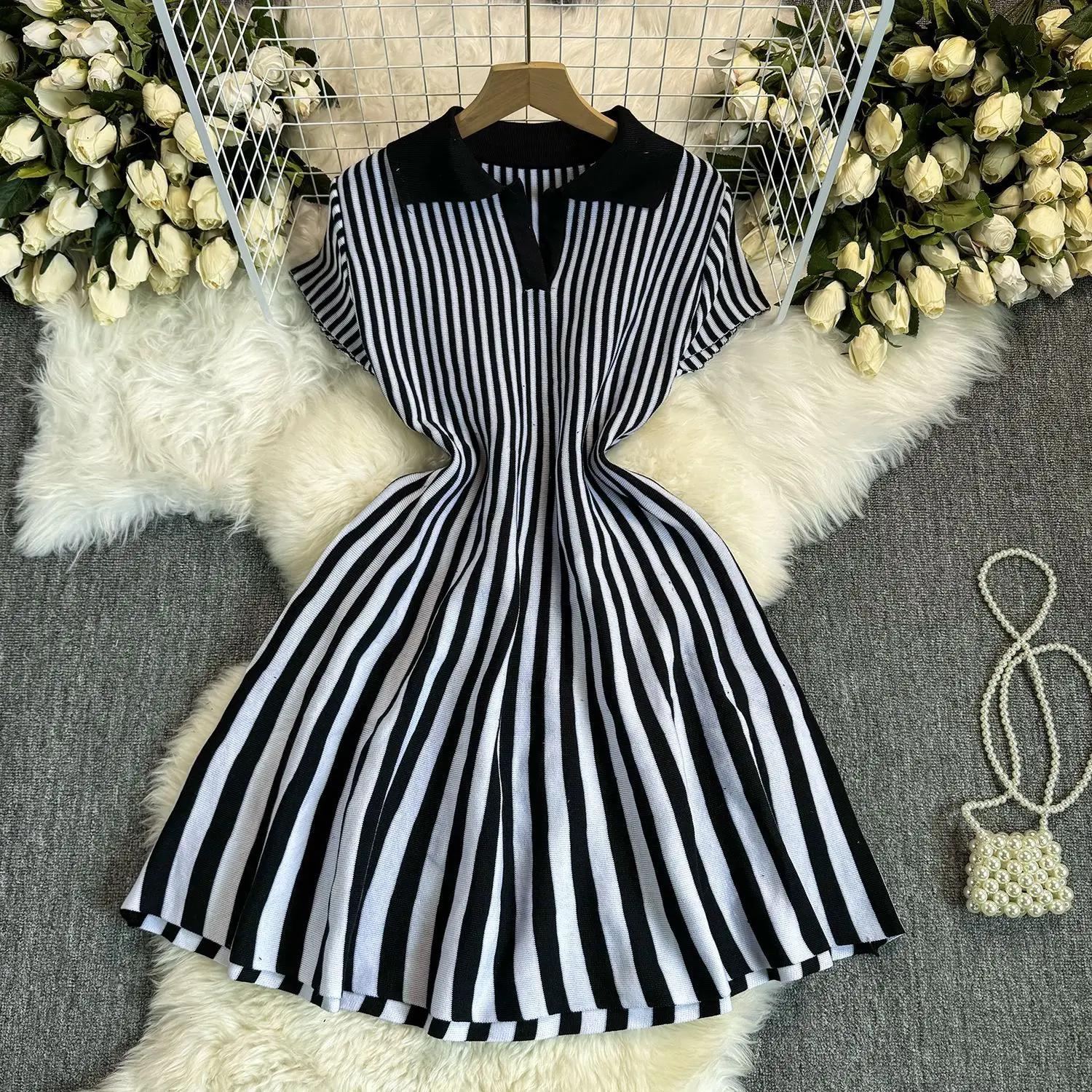 المرأة الربيع سترة فستان مخطط فساتين متماسكة الكشكشة حفلة عادية أنيقة طويلة محبوك Vestidos عالية الخصر Y2k الشارع الشهير