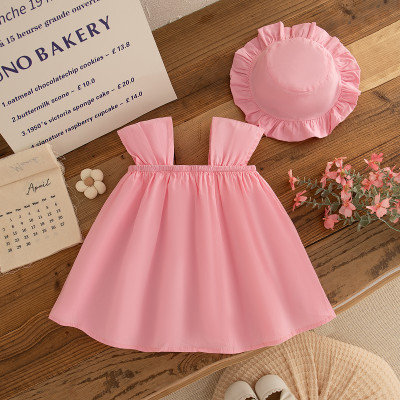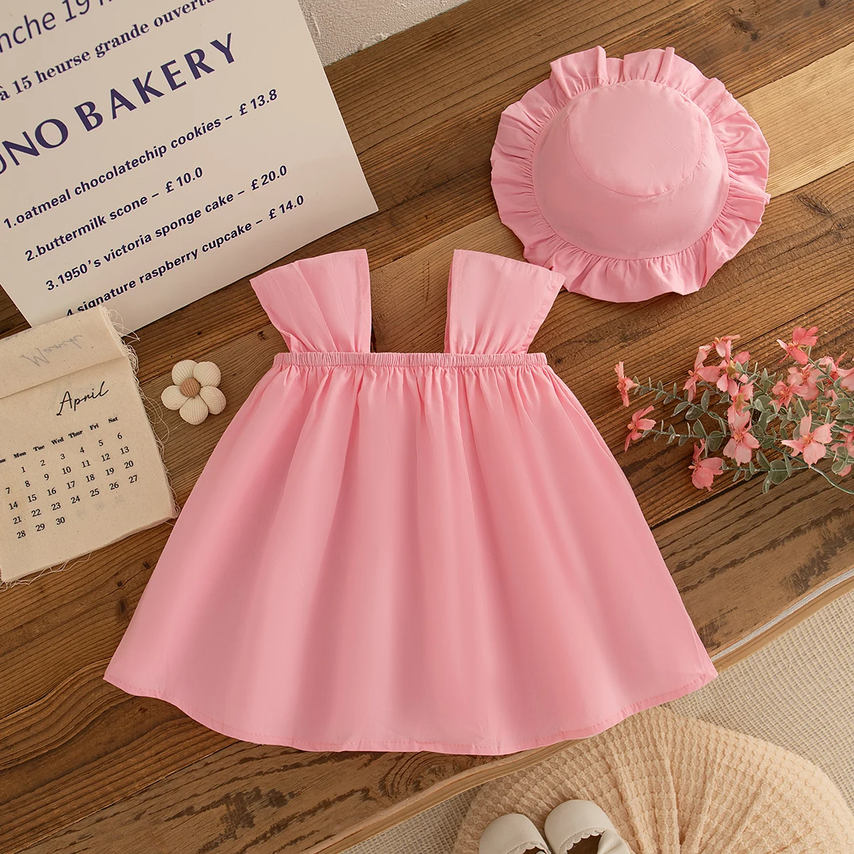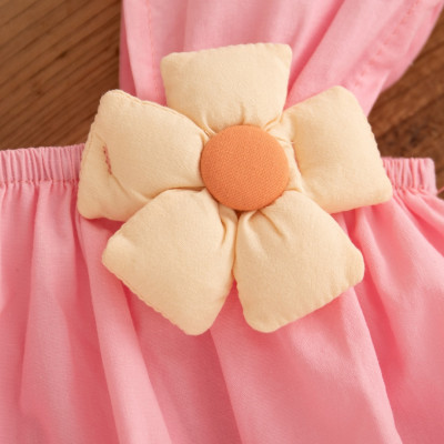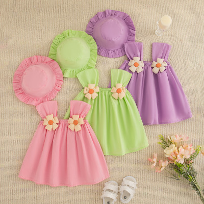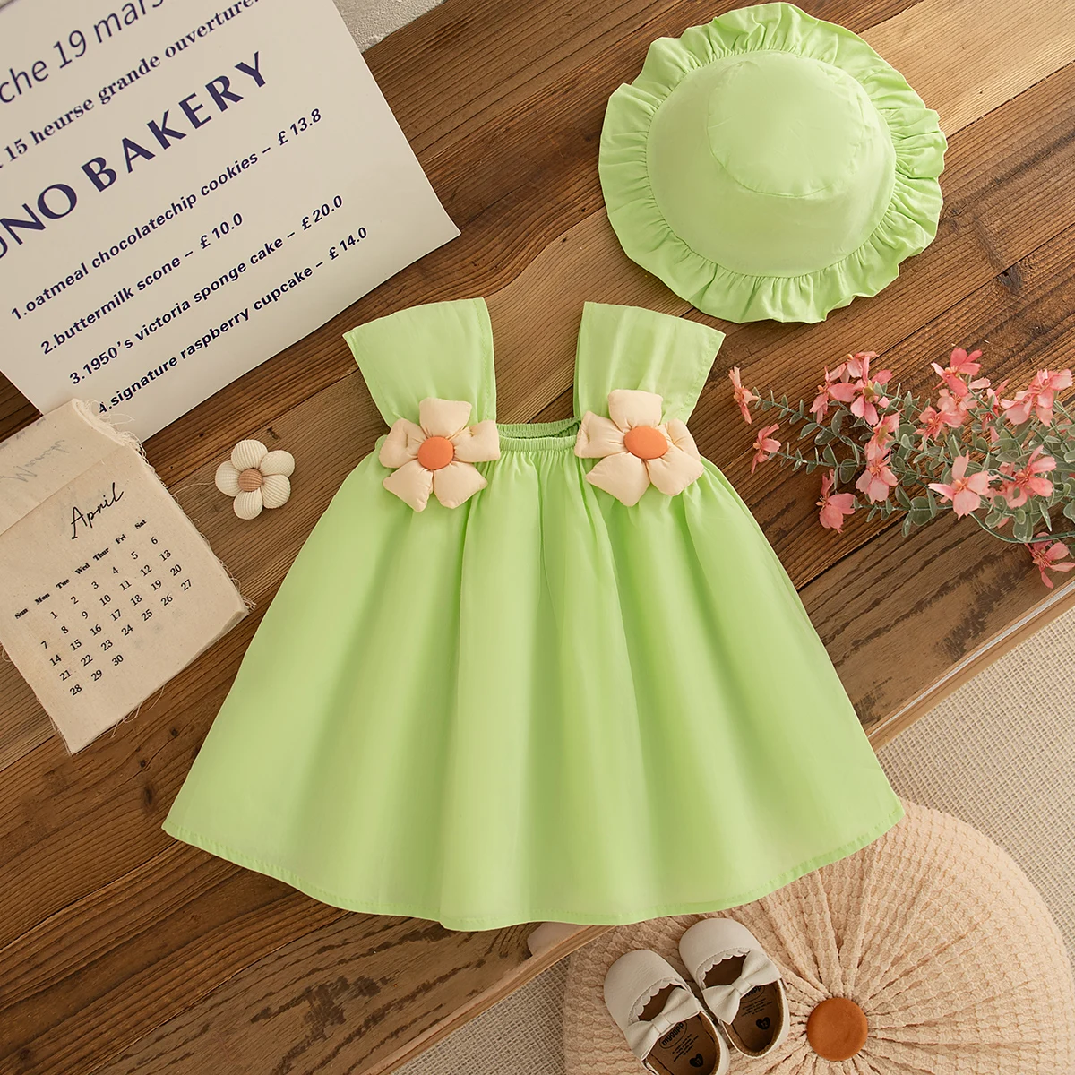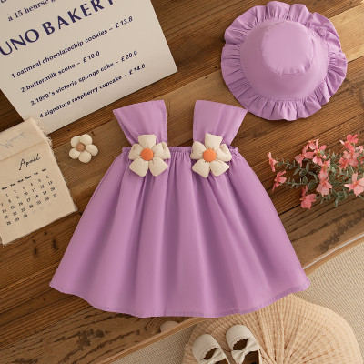 فستان بناتي صيفي بنمط زهور بلون سادة فساتين أطفال بسيطة للشاطئ فستان بناتي كاجوال لطيف مع حقيبة