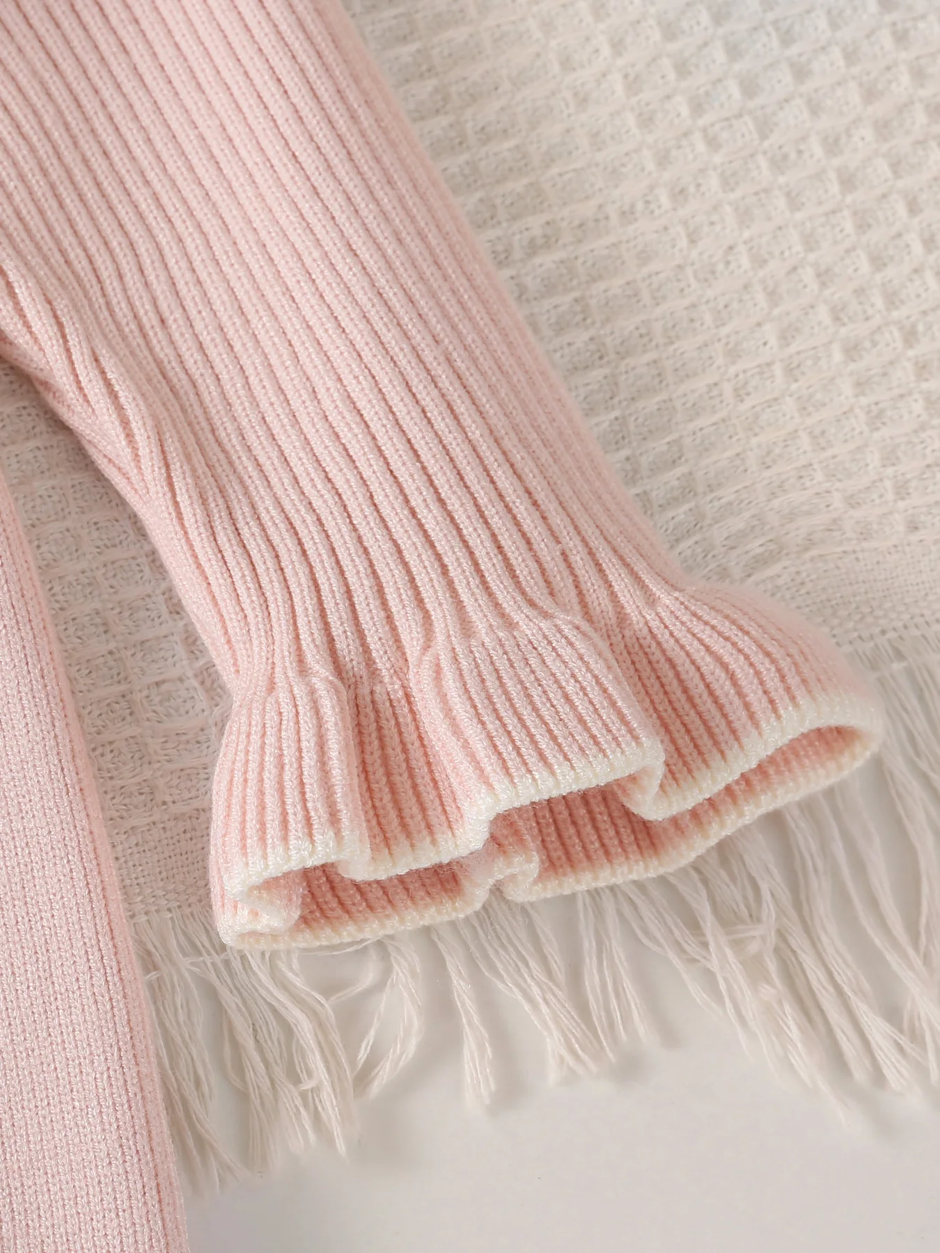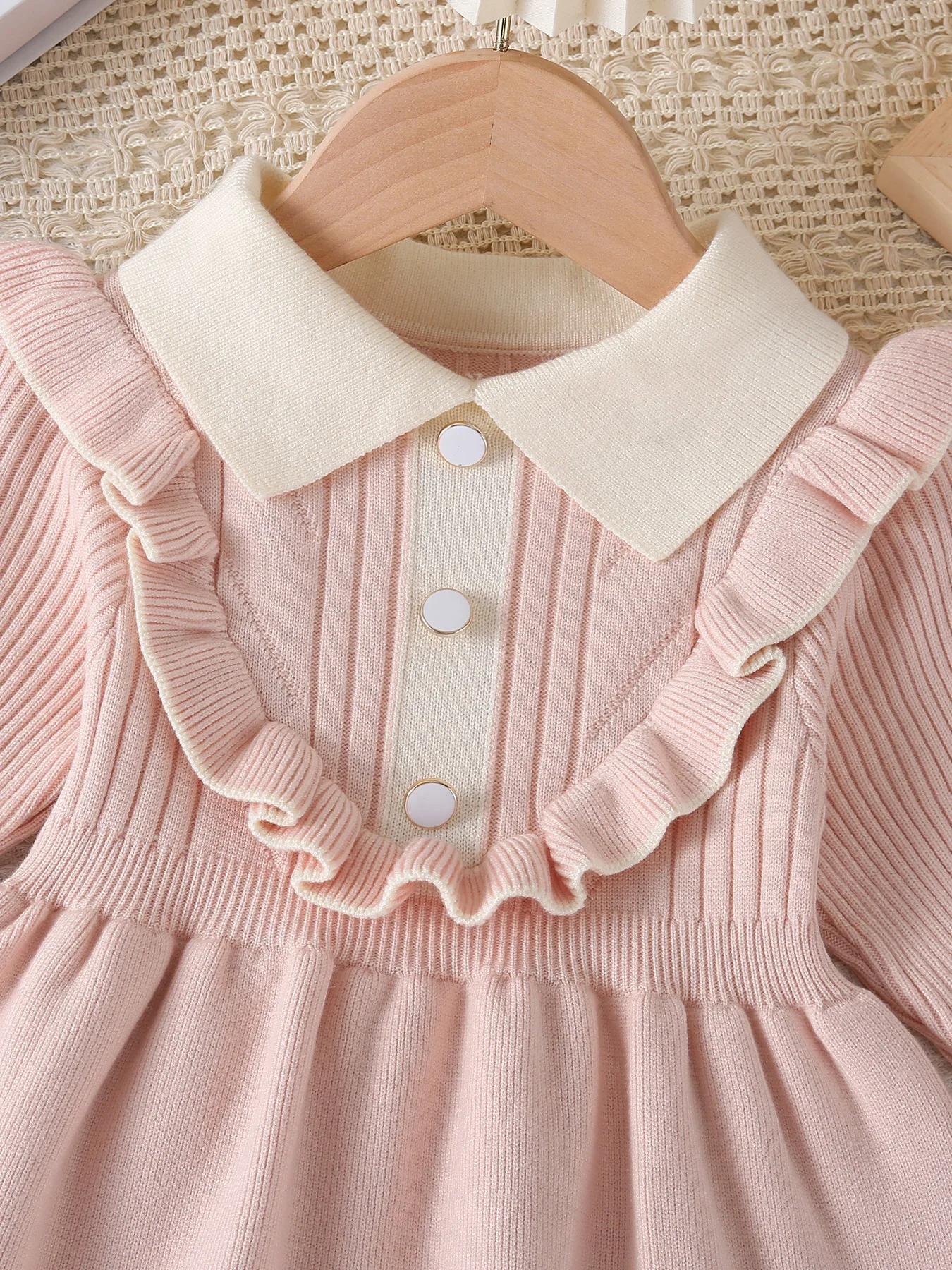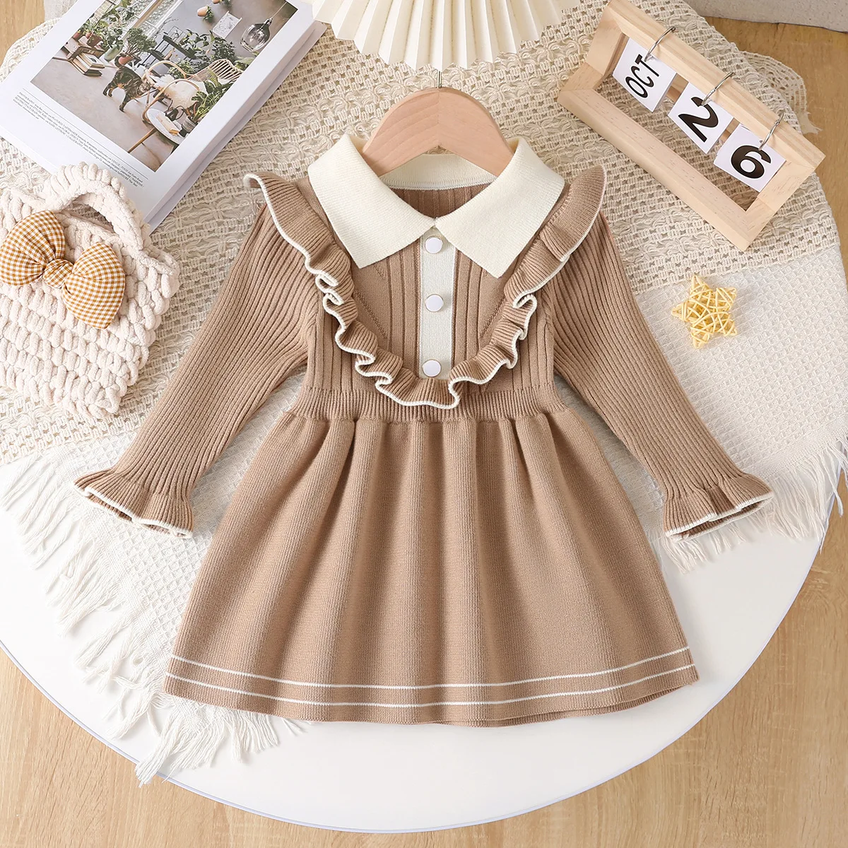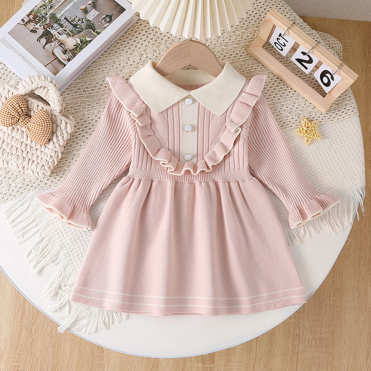 1-5Y الفتيات محبوك فساتين جديد الخريف الأطفال رفض طوق سترة فستان طفل طويل الأكمام ملابس الأميرة