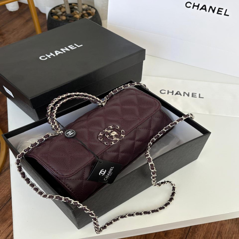 شنطة شانيل CHANEL ميني كروس – جلد عنابي غامق (حجم صغير)