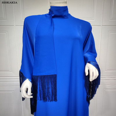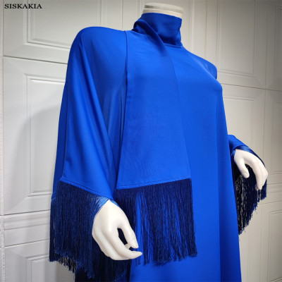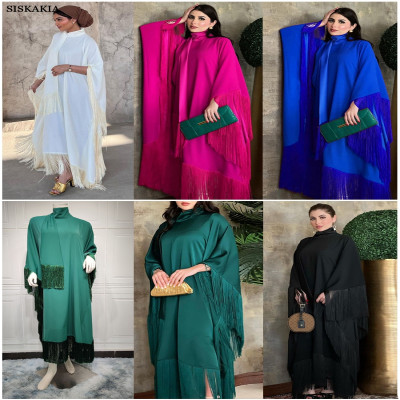 عباءة إسلامية متواضعة شرابة للنساء موضة فضفاضة حجم كبير كم باتوينغ فساتين حفلات سهرة مغربية دبي قفطان