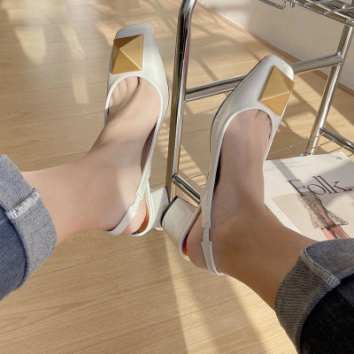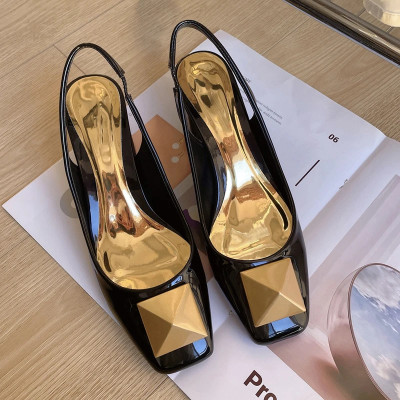 تصميم جديد ساحة تو النساء الصنادل موضة كبيرة الذهب برشام السيدات فستان أحذية الحفلات مربع حذاء كعب عالي أحذية 2022 الأحذية