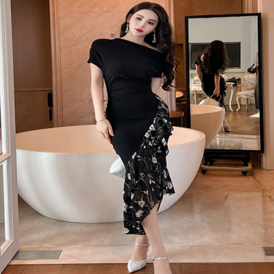 فستان سهرة صيفي أنيق للنساء لون أسود أنيق مثير مكشوف الأكتاف فساتين طويلة ضيقة للحفلات والحفلات الراقصة