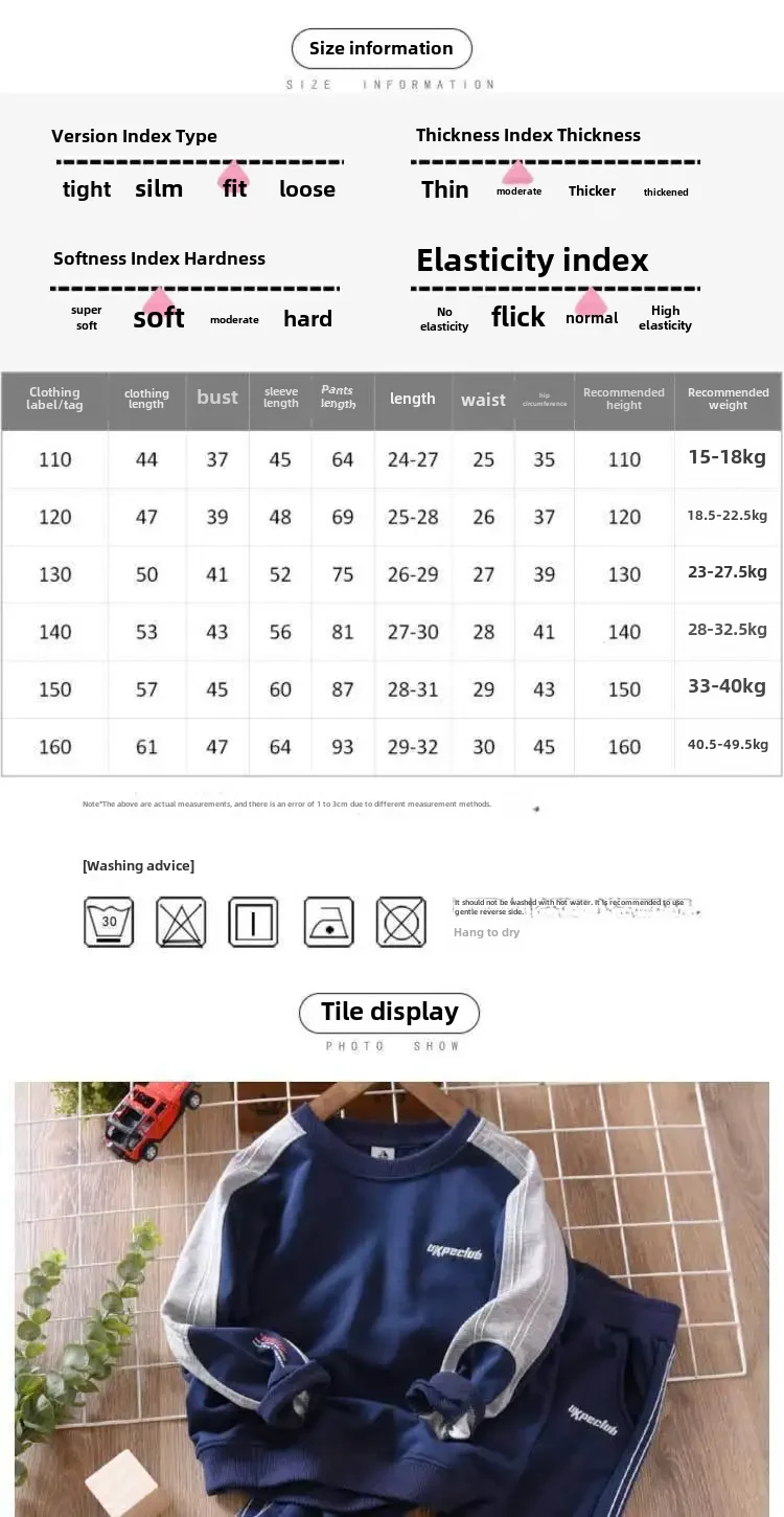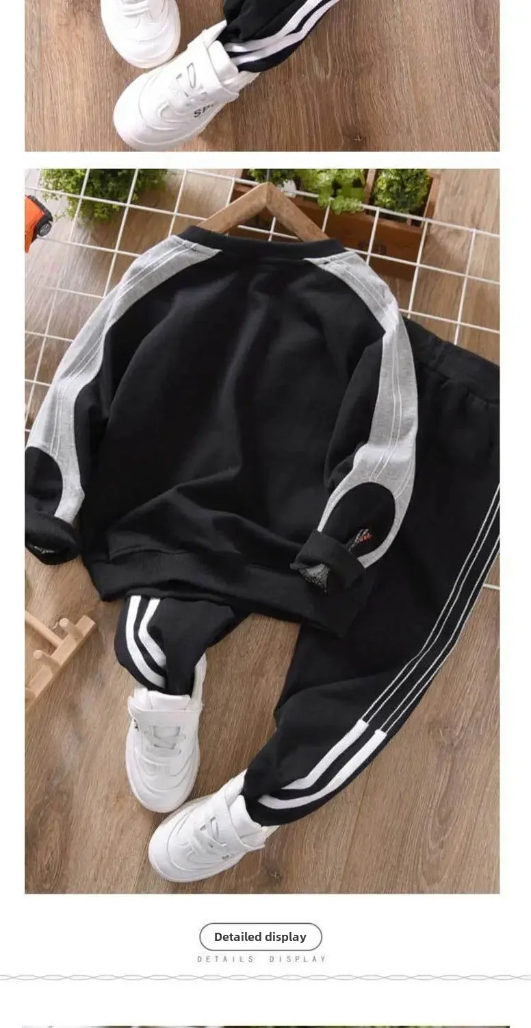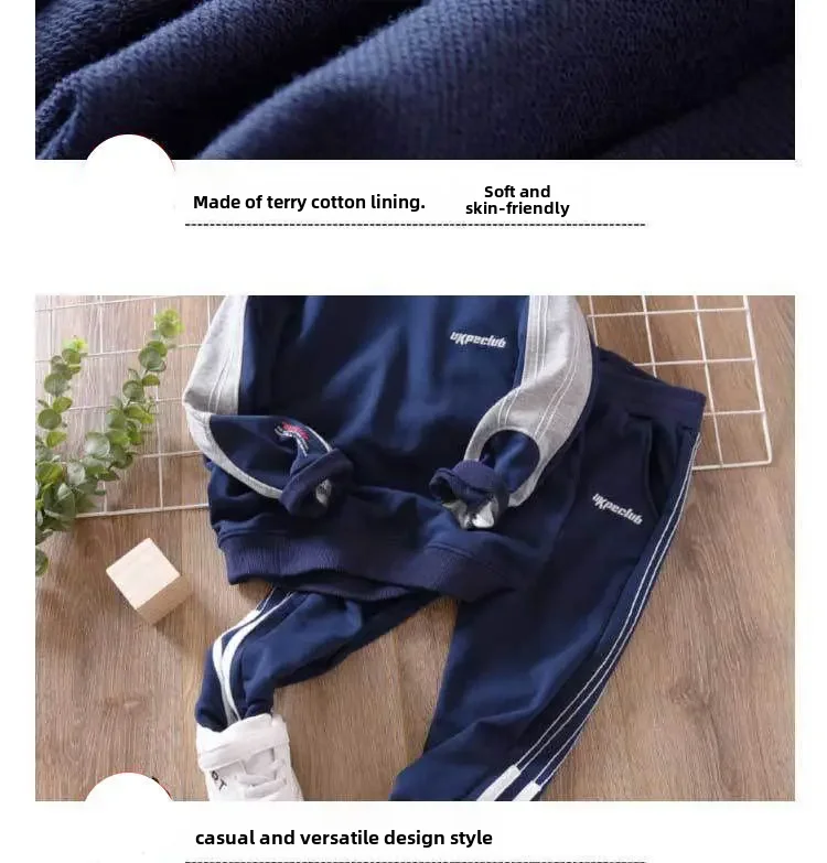 • تصميم عصري:تتميز بدلة الأولاد هذه بتصميم أنيق وعصري ، مثالية لفصلي الربيع والخريف. إنه خيار رائع لأي نزهات غير رسمية.