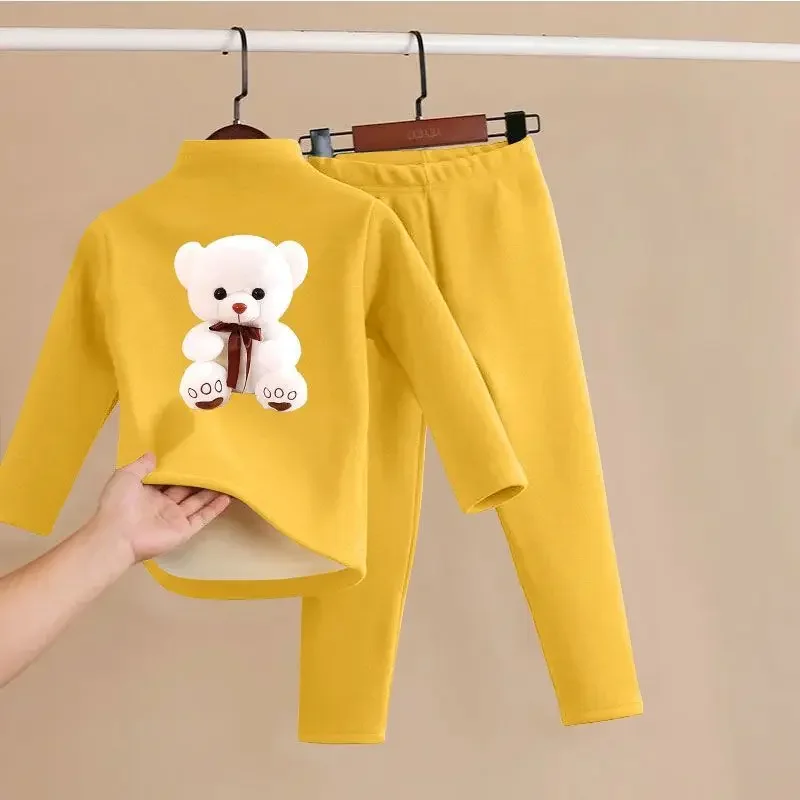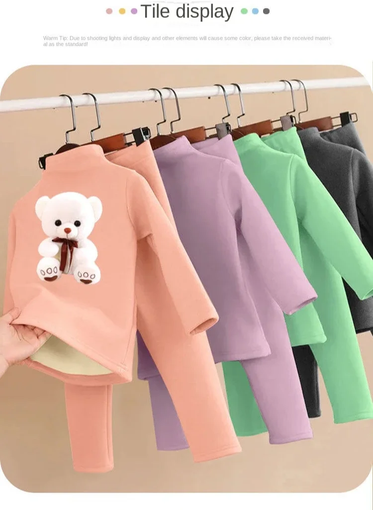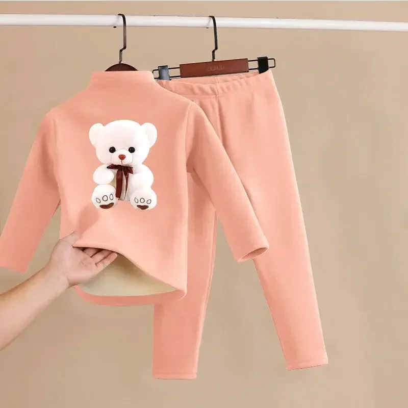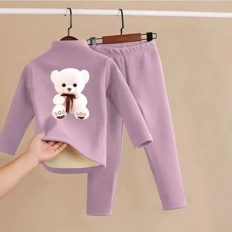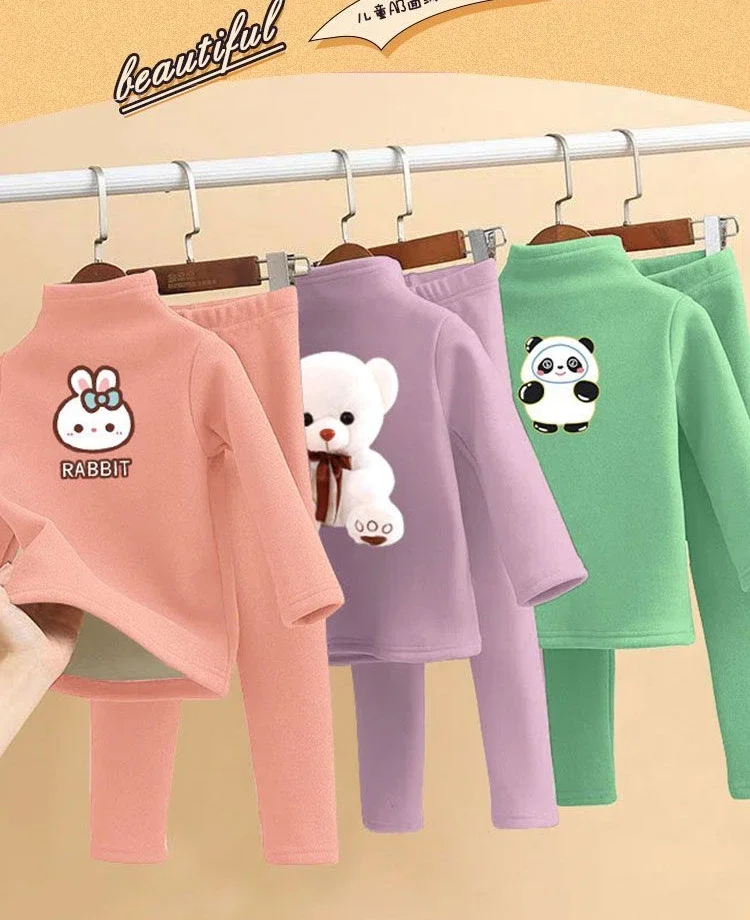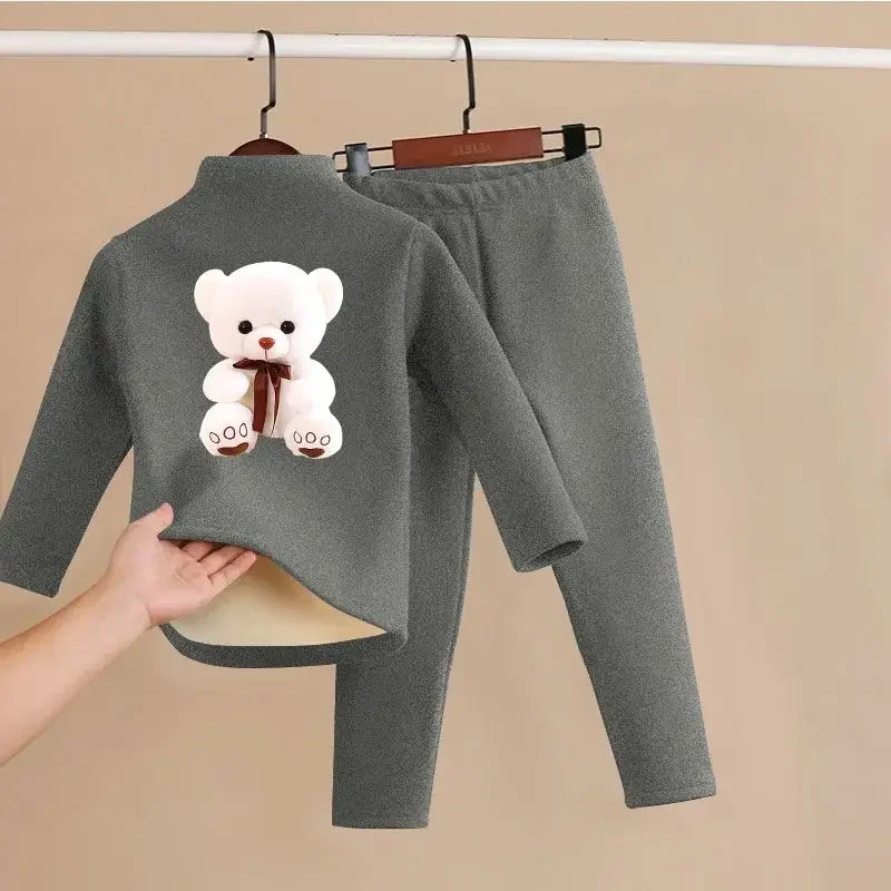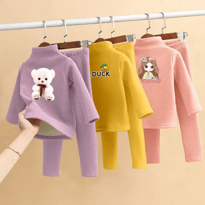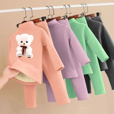 مجموعة ملابس داخلية من الصوفي للأطفال ، ملابس قطنية دافئة ، ملابس منزلية كاجوال للأطفال متوسطة الحجم ، بيجامة من قطعتين ، شتوية
