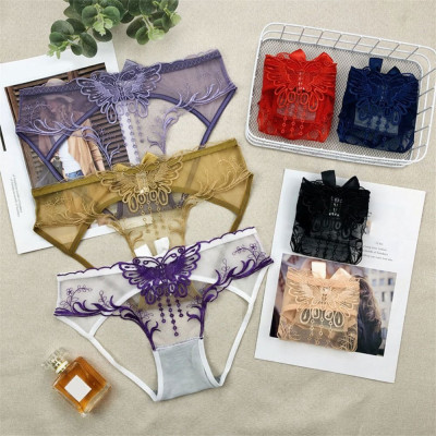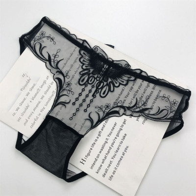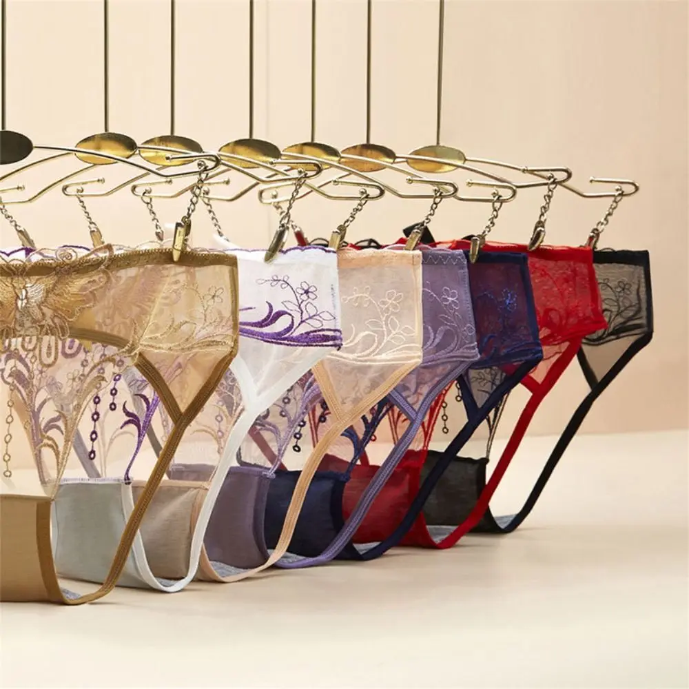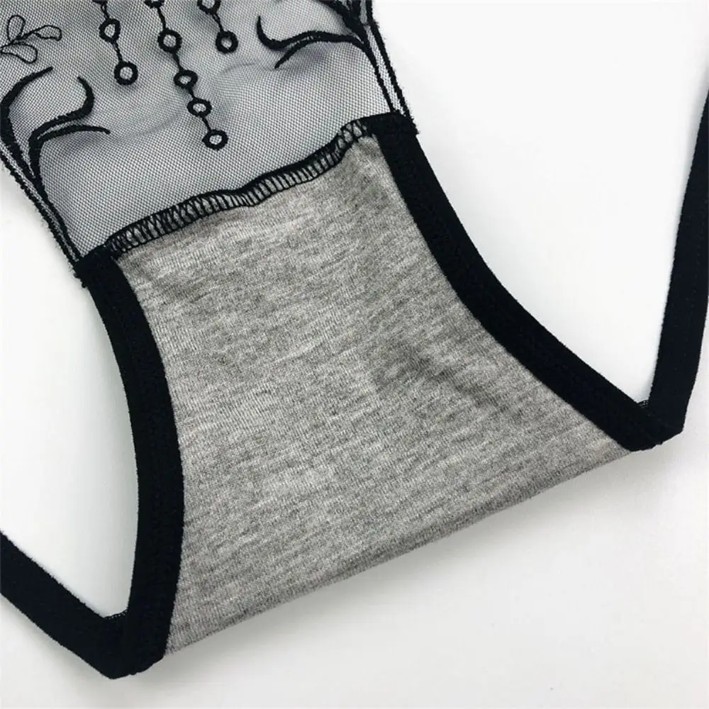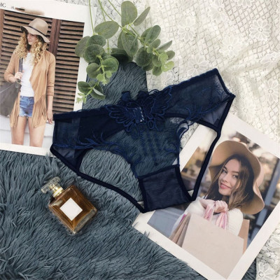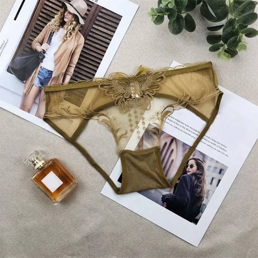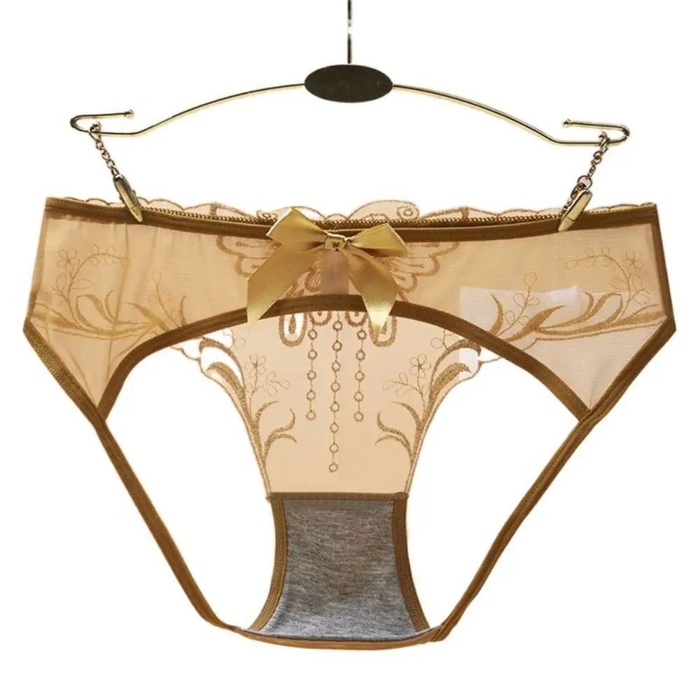 سراويل داخلية منخفضة الخصر بفيونكة دانتيل مجوفة ، شبكة زهور رقيقة من الأوراق ، سراويل داخلية شفافة ، ملابس داخلية بسيطة ، ثونغ بتطريز الفراشة