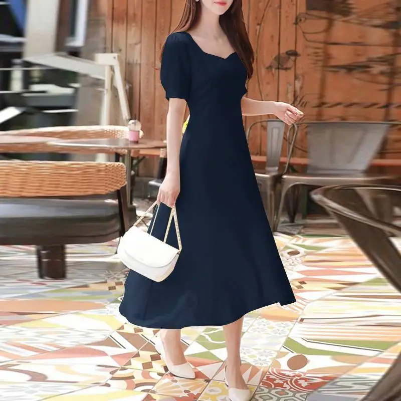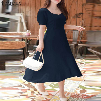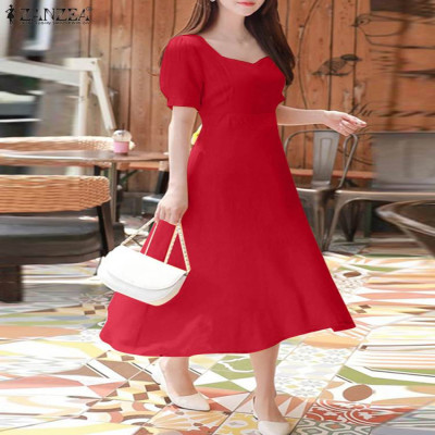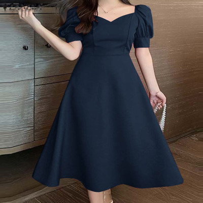 فساتين حفلات أنيقة بخصر من ZANZEA فستان سهرة عتيق للنساء بأكمام قصيرة منتفخة على شكل حرف a رداء 2024 فساتين زفاف صيفية ميدي