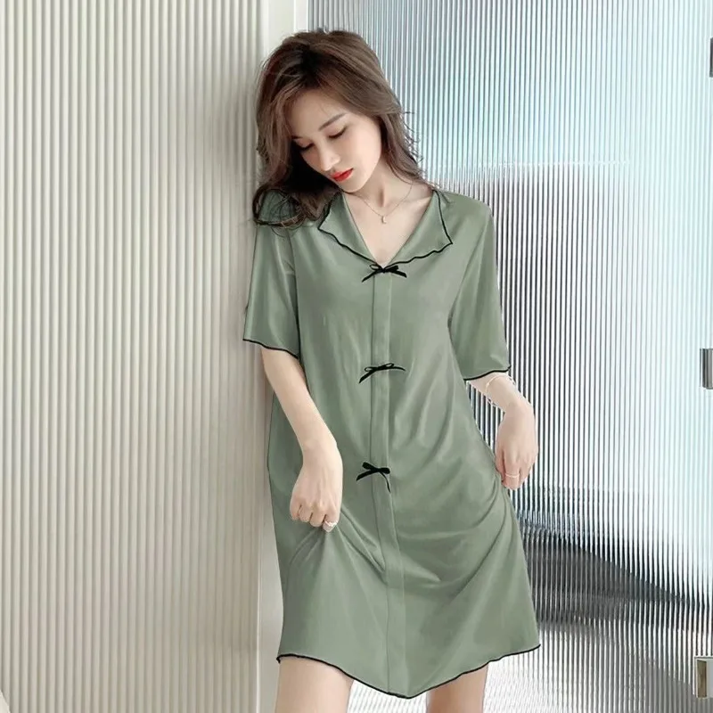 ملابس نسائية قصيرة الأكمام رقيقة فضفاضة للأمومة ، بيجامات كبيرة الحجم ، ملابس منزلية ناعمة ، فستان نوم مثير ، مقاس كبير ، عرض ، صيف
