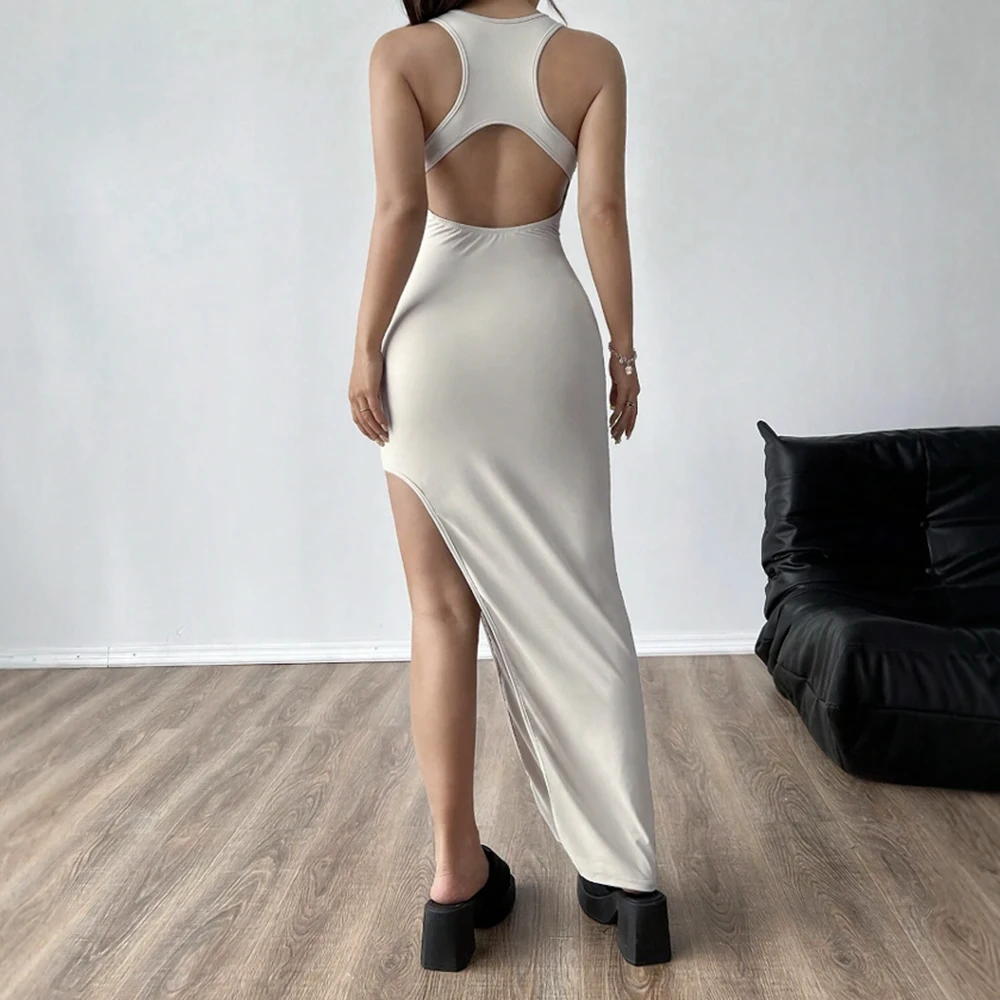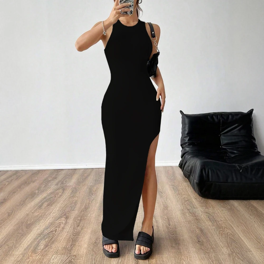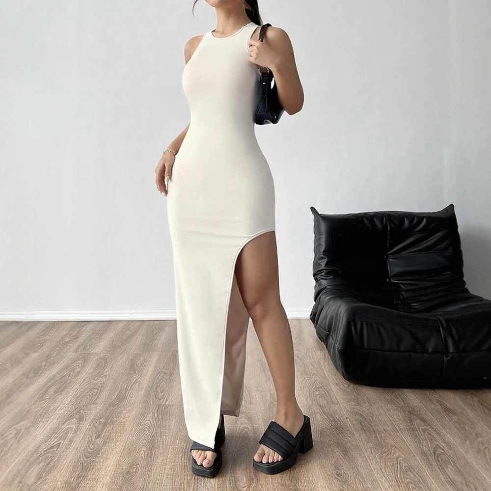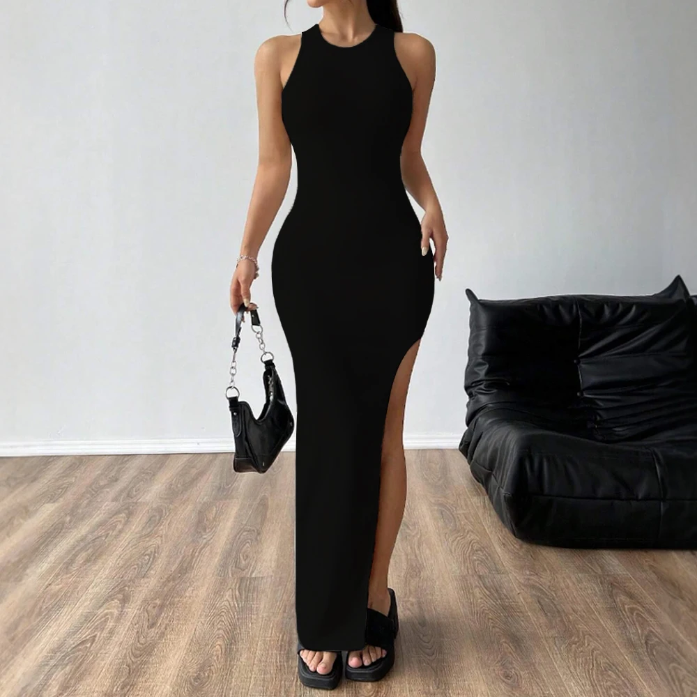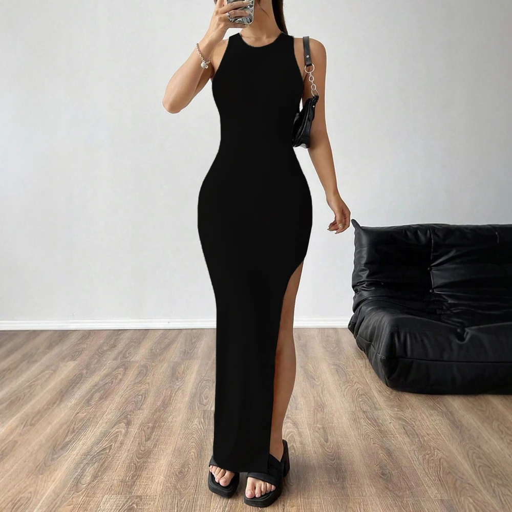 فساتين Mia Muse للربيع والصيف أنيقة ومثيرة بفتحة جانبية بدون أكمام ورقبة دائرية فساتين سهرة رسمية للنساء