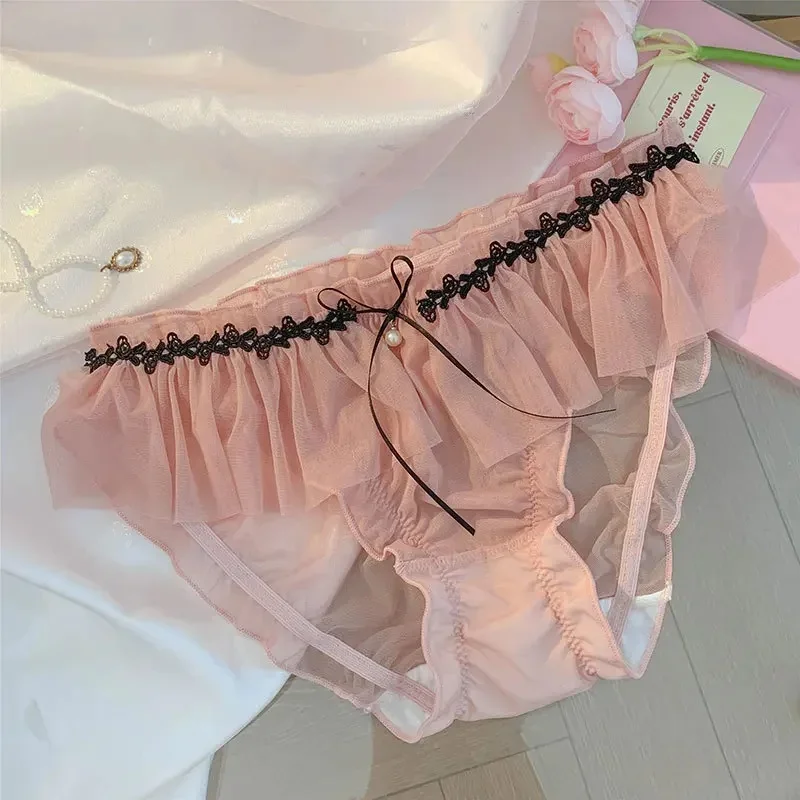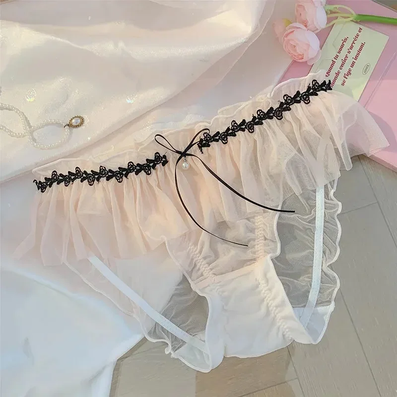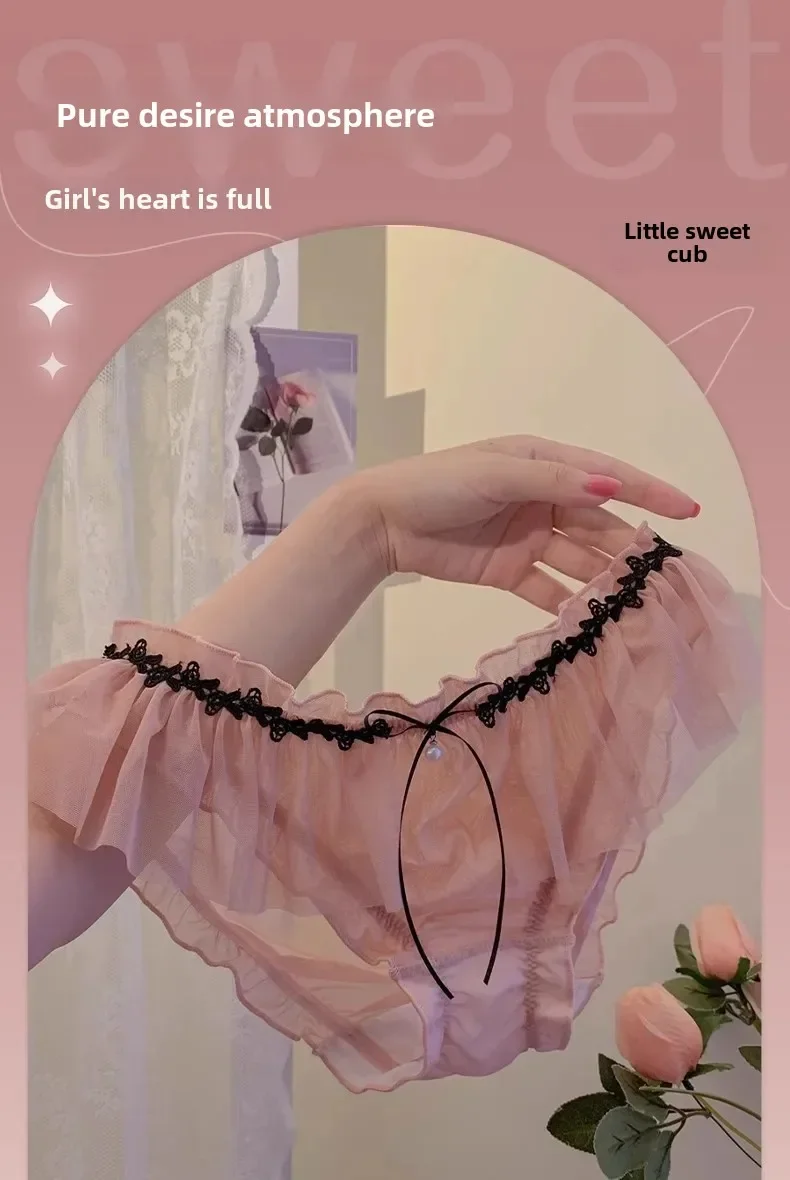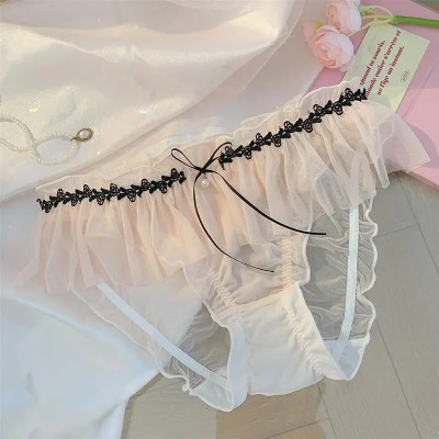 ملابس داخلية شبكية مثيرة من الدانتيل رغبة نقية صيفية رفيعة نموذج للنساء سراويل داخلية للسيدات قابلة للتنفس ملابس داخلية للفتيات من اللؤلؤ