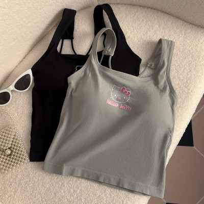 سانريو مرحبا كيتي ملابس الموضة ، أعلى Y2K مع وسادة الثدي ، لطيف أبيض أعلى اقتصاص ، حمالة مثير ، هدية فتاة ، الصيف ، بارد
