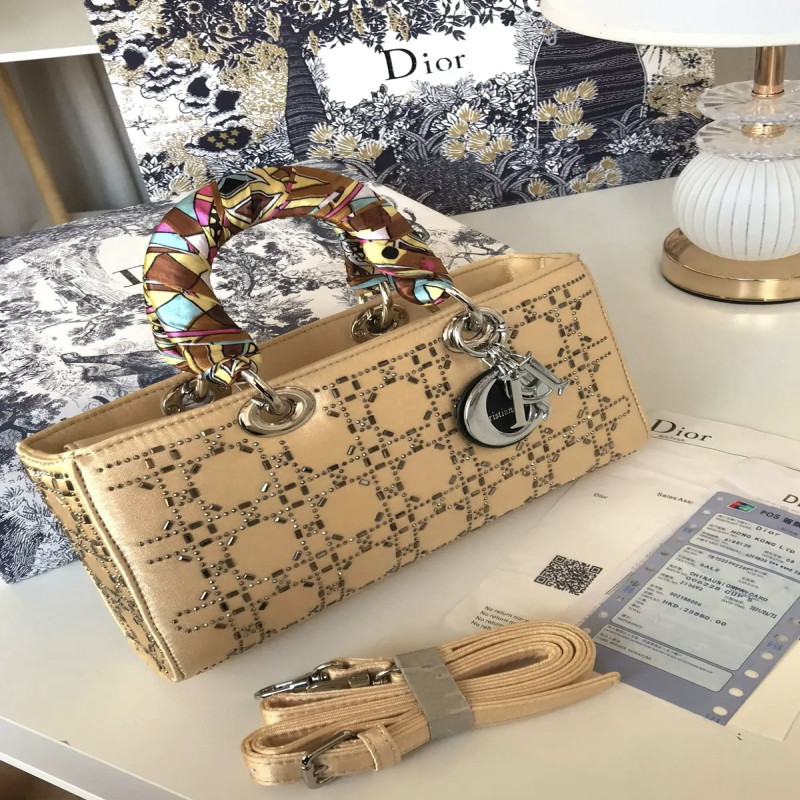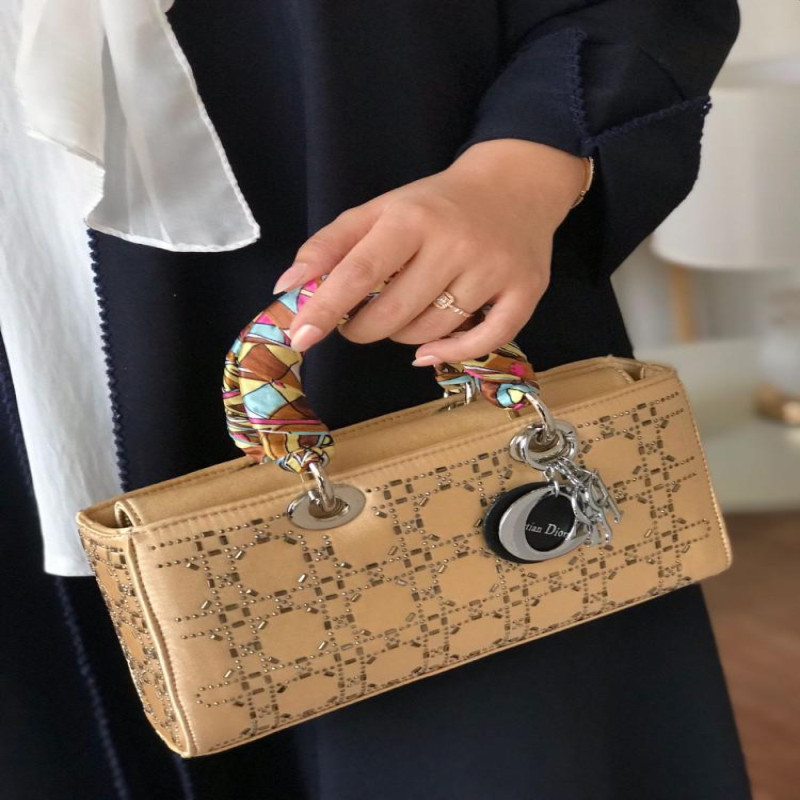 ✨ شنطة ديور Dior طبق الأصل بتصميم فاخر وأنيق وجودة عالية ومرصعة بتفاصيل براقة، مع مقابض مغطاة بـ اسكارف انيق وعصري لإطلالة مميزة.