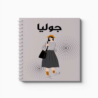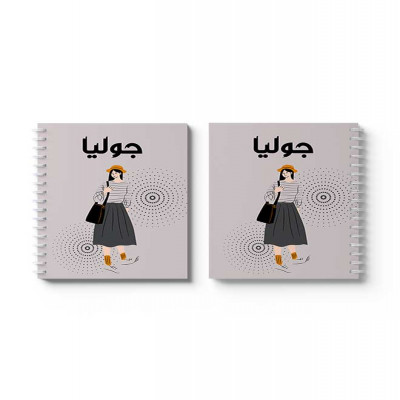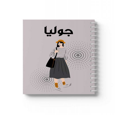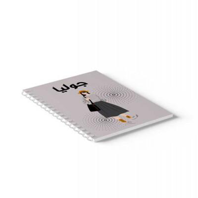 دفتر سلك حلزوني ٦٠ ورقة مقاس A5، لتسجيل الملاحظات وتدوين التذكيرات، بغلاف من الورق المقوى بتصميم اسم جوليا بالعربية