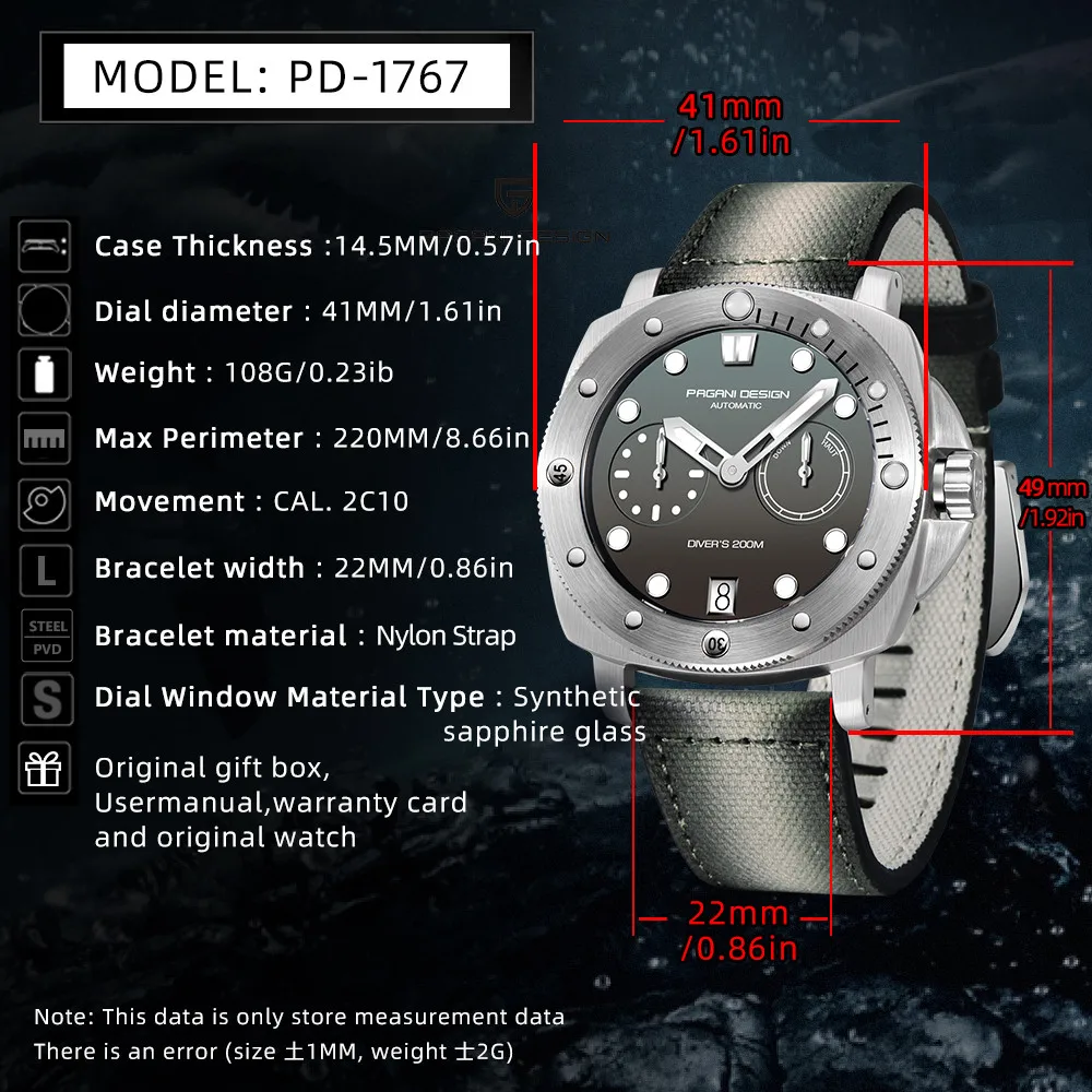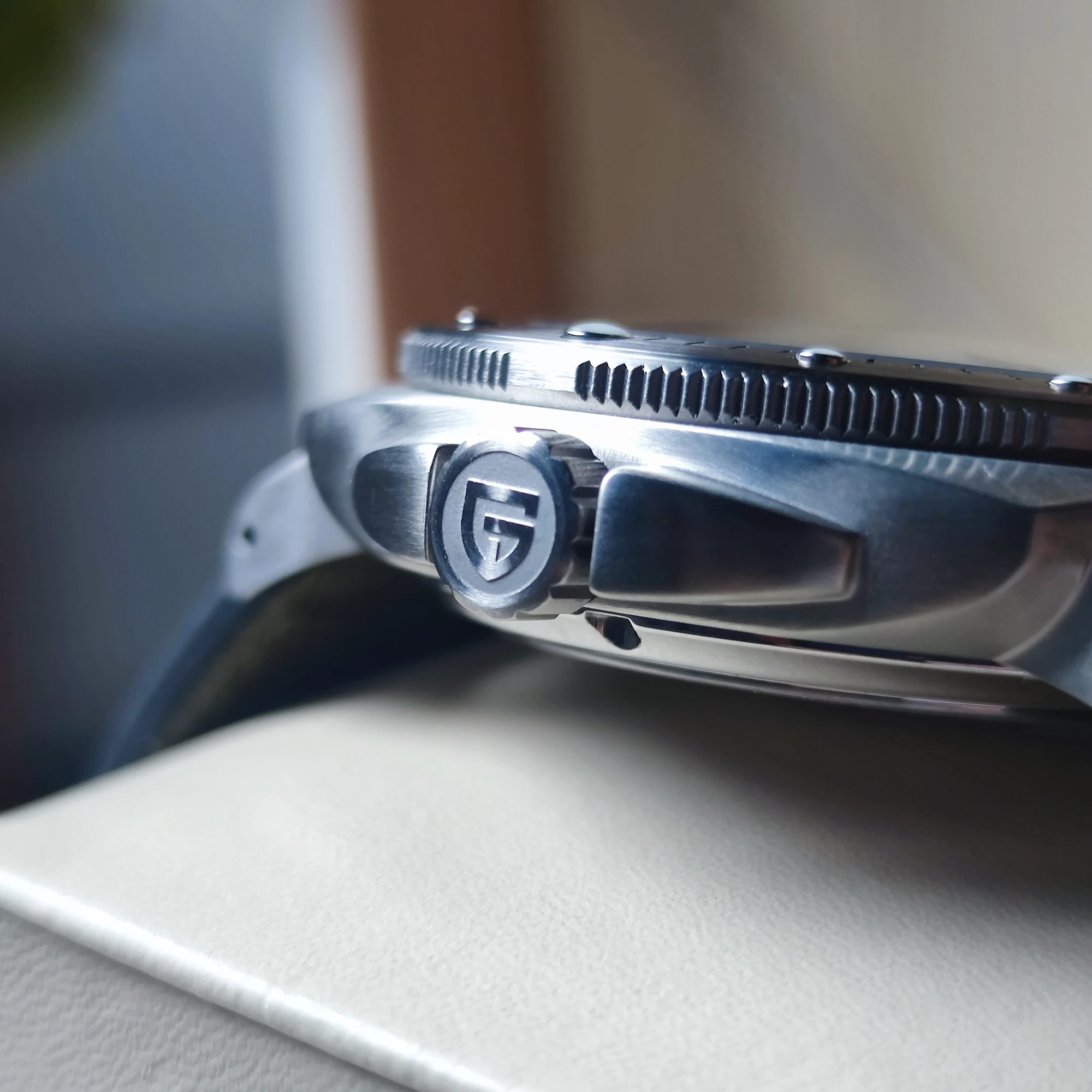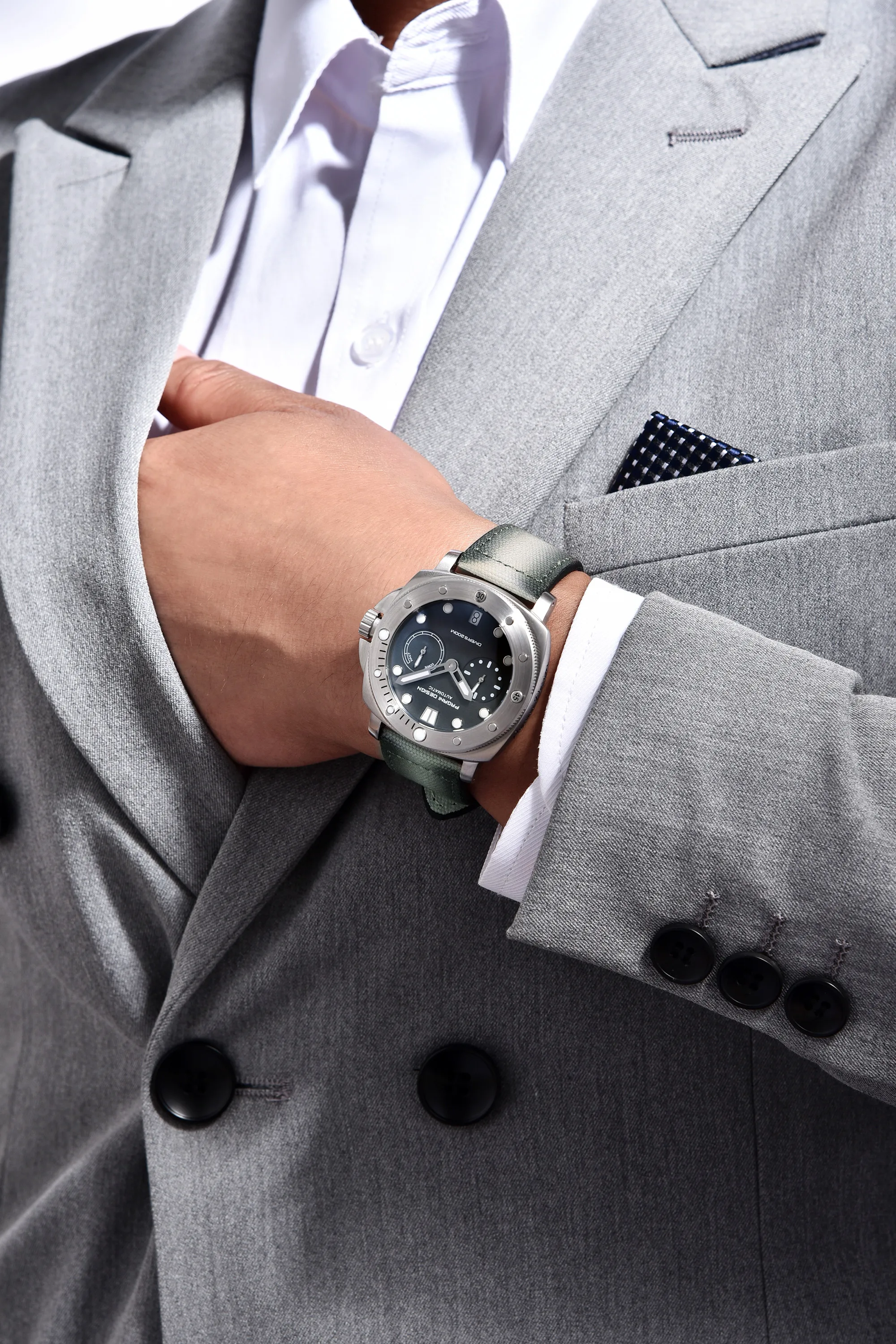 برونكل: 120 نقرات على اتجاه واحد مدي الكرونوغراف ، خاتم السيراميك العلوي ، 12 O علامات الانارة على مدار الساعة