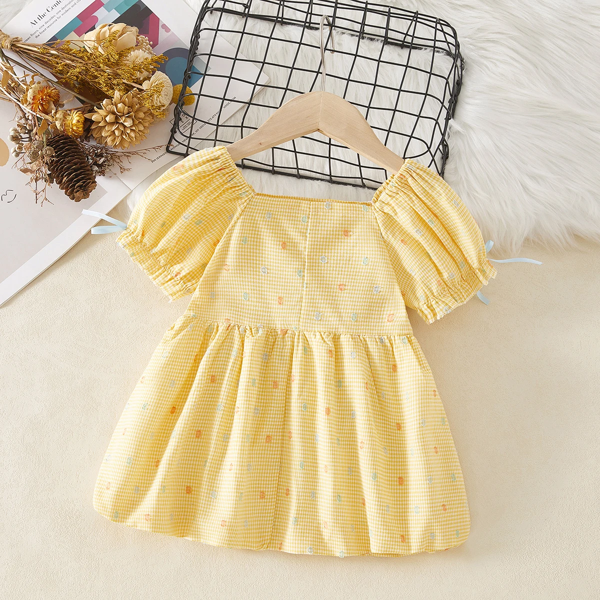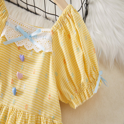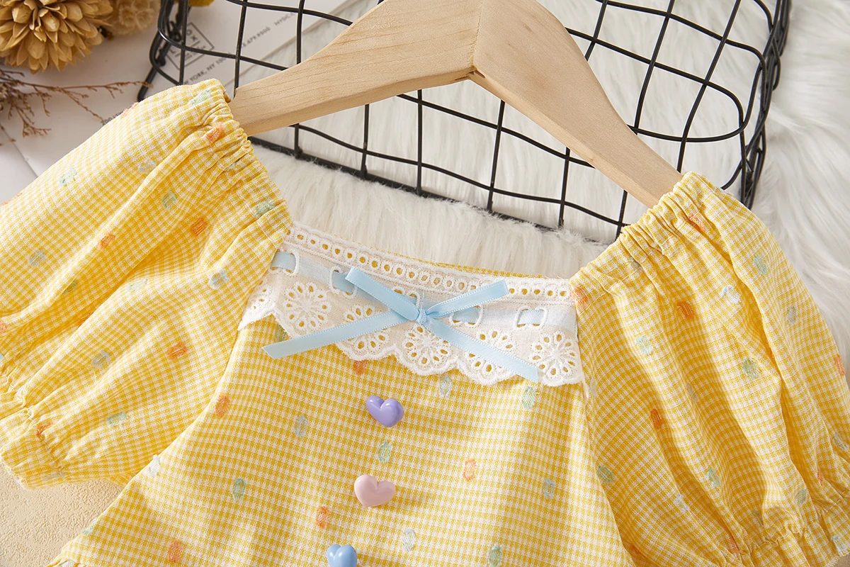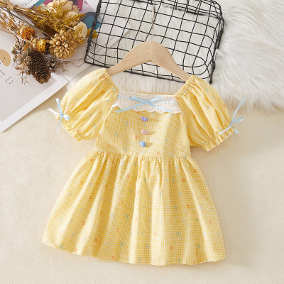 فستان الأميرة الصيفي الجديد للفتيات بأكمام فقاعية منقوشة فستان مناسب للأطفال من عمر 0 إلى 4 سنوات