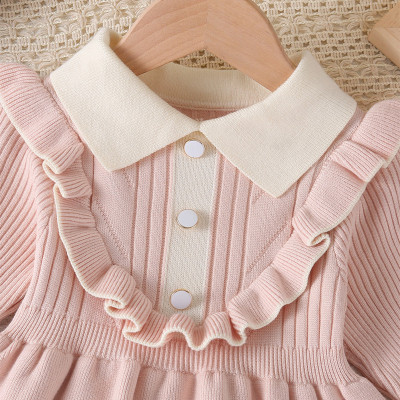 1-5Y الفتيات محبوك فساتين جديد الخريف الأطفال رفض طوق سترة فستان طفل طويل الأكمام ملابس الأميرة