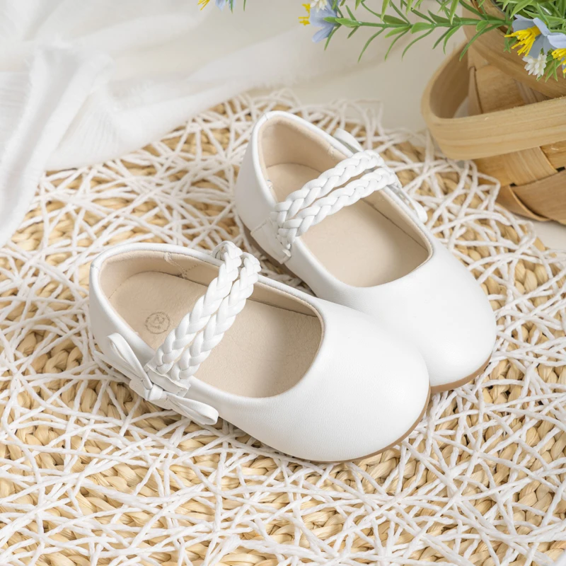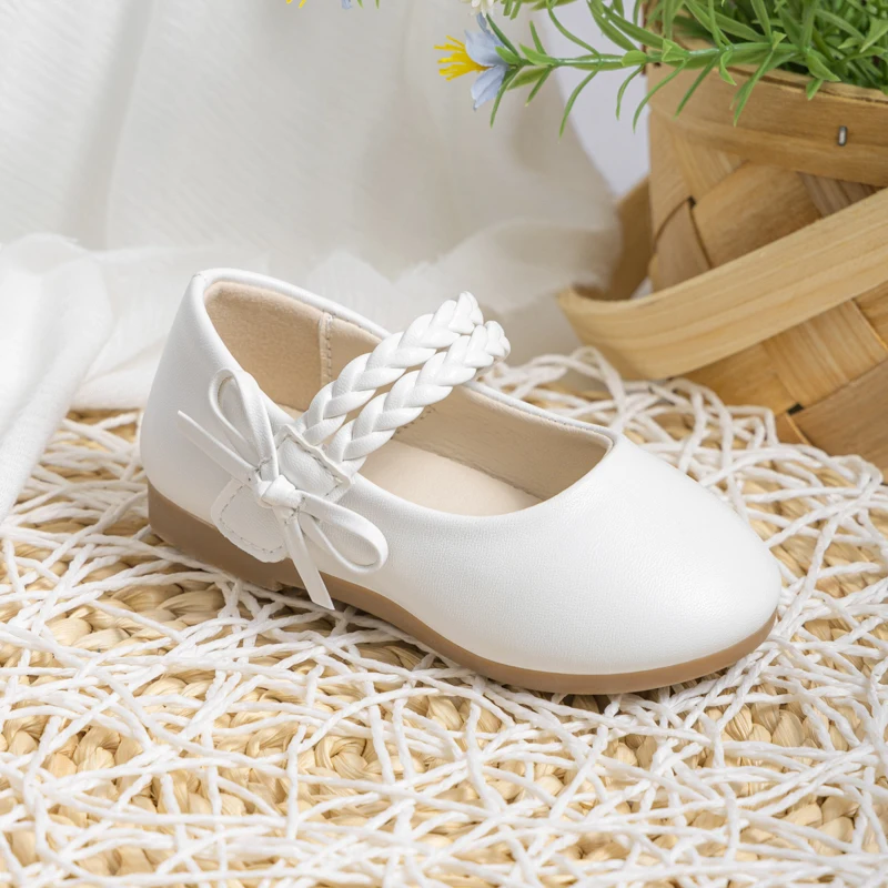 كيدسون-أحذية فستان من الجلد الصناعي للبنات ، أميرة ، حفل زفاف ، مدرسة ، كعب منخفض ، شقق للأطفال الصغار الكبار ، موضة ، أبيض
