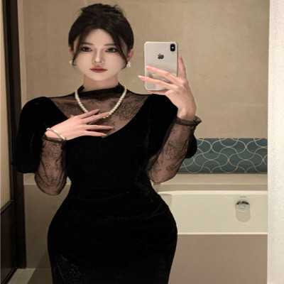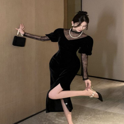فساتين حفلات أنيقة للسيدات، فستان سهرة بتصميم هيبورن مخملي مصمم بمقاس مرقع، فستان سهرة للسيدات لحفلات الزفاف