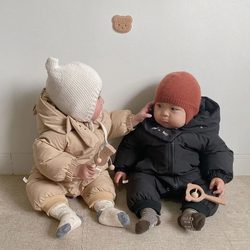 الوليد بيبي بوي فتاة بذلة الشتاء لطيف الكرتون مقنعين داخلية للرضع الصلبة سميكة الدافئة الاطفال ملابس الفتيات ازياء