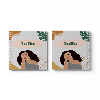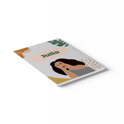 دفتر سلك حلزوني ٦٠ ورقة مقاس A5، لتسجيل الملاحظات وتدوين التذكيرات، بغلاف من الورق المقوى بتصميم اسم جوليا بالإنجليزية