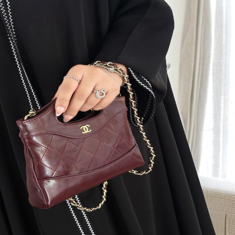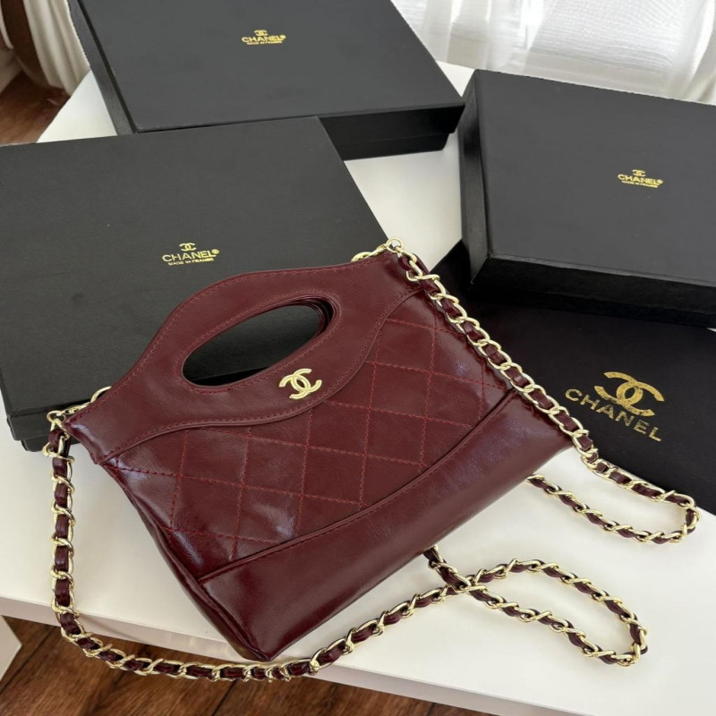 شنطة شانيل CHANEL جلد فاخرة – عنابي × ذهبي (حجم صغير)